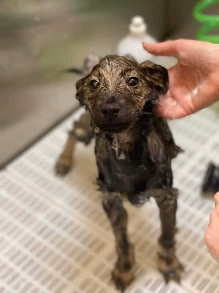 Koiran voi pestä ensimmäisten päivien aikana. Toimenpide voi olla koiralle uusi ja pelottava, mutta mielestämme pesu menee siinä samassa kaiken muun uuden ohessa. Koiralle tulee myös parempi olo, kun sen turkki on puhdas.