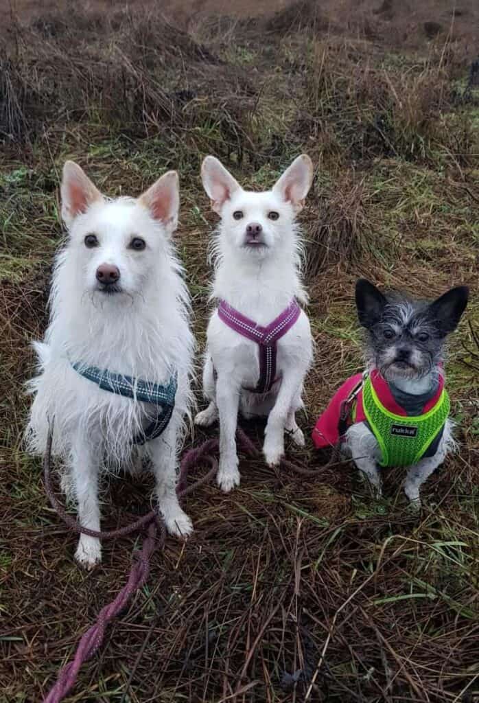 Kaksi kuukautta kotiutumisen jälkeen: ”Lapsia ei ole meillä ollut kylässä, joten sen suhteen en tiedä mikä on Erkin tilanne. Eilen kävimme rautakaupassa ja Erkki alkoi kyllä heti murista kun näki lapsen, eli tilanne varmaan sama kuin ennenkin. Kissan kanssa ”eristys” jatkuu. Samassa huoneessa on oltu, kun Erkin huomion pitää makupaloissa, mutta muutoin ei onnistu. Erkki alkaa huutamaan heti, jos kissa naukaisee vaikka ”toisessa päässä taloa”. Sitruunapanta on jouduttu ottamaan käyttöön kiljumisen rajoittamiseksi, toivotaan että väliaikainen ratkaisu. Luulen että Erkin tilanne on sekoitus stressiä paikanvaihdoksesta ja hankalaa murrosikää. Se kiihtyy todella nopeasti, jäystää pakonomaisesti leluja, ruohoa, huonekaluja yms., vinkuu, haukkuu, tempoo hihnassa sinne tänne. Sen liikkuminenkin on sellaista töpöttämistä, koko koira on niin pinkeänä. Ei toki koko aikaa, osaa nukkua yöt hyvin, osaa rentoutua jo sylissäkin (kynsien leikkuu sujuu), hakeutuu jo lähelle saamaan rapsutuksia. Seuraa minua vessaan ja suihkuun ja siis kaikkialle. En vähättele ongelmaa, tällä hetkellä tämän koiralauman kanssa on raskasta ja hankalaa, mutta tilanne varmaankin helpottaa, kun aikaa kuluu. Seuraavaksi suunnitelmissa on hankkia isoja putkiluita pureskeltavaksi (katsotaan saadaanko vatsa kestämään), ja mietin että kehtaanko mennä juoksuttamaan Erkkiä meidän mamman potkupyörällä 🙂 Polkupyörällä koitin muutaman kerran, mutta en uskalla, Erkki kun vetää niin paljon… Erkillä todettiin silloin hiivatulehdus korvassa, mutta sen perinteinen hoito (korvahuuhde ja kortisonitipat) osoittautui mahdottomaksi edes useamman ihmisen voimalla. Joten, kävimme lääkärissä saamassa korvaan kerta-ampullin muutamaan kertaan. Ja huuhtelu keittosuolaliuoksella koska lääke pitää saada pois korvasta.
