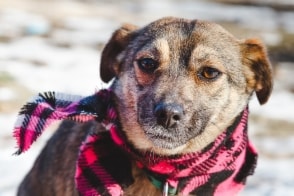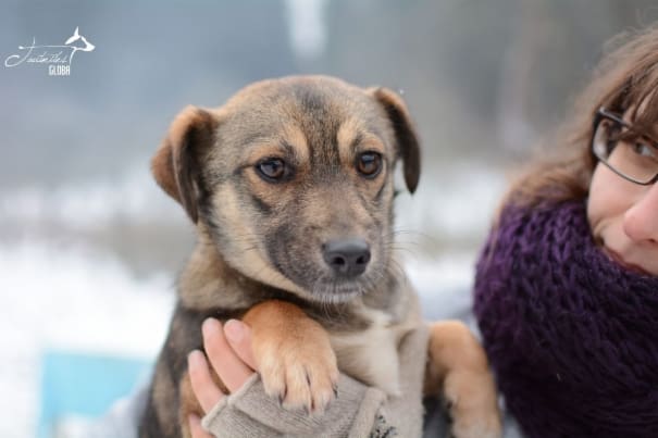 Minä olin ennen kovasti ujo ja laiha tyttönen, joka asuin äitini kanssa jossain pellolla maantien laidassa. Tiedättekö, en enää! Puoli vuotta sitten kivat ihmiset pelastivat minut, ruokkivat minua, rakastivat minua. Olisin ihanteellinen perheeseen, jossa etsitään toiselle koiralle seuraa. Rakastan koiraseuraa ja se tekee minusta rohkeamman.