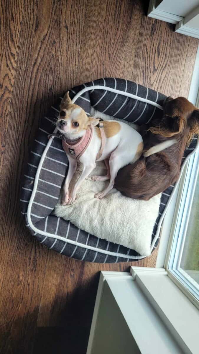 Tarhalla jalastani löydettiin vanha murtuma ja polvilumpioni leikattiin. Pienillä roduilla patellaluksaatio on kovin yleistä. Olen toipunut leikkauksesta hyvin ja olen oma iloinen itseni. Tarhan työntekijätkin rakastuivat minuun välittömästi, mutta jostain syystä kukaan ei ole halunnut adoptoida minua paikallisesti. Eivät taida ymmärtää hyvän päälle…