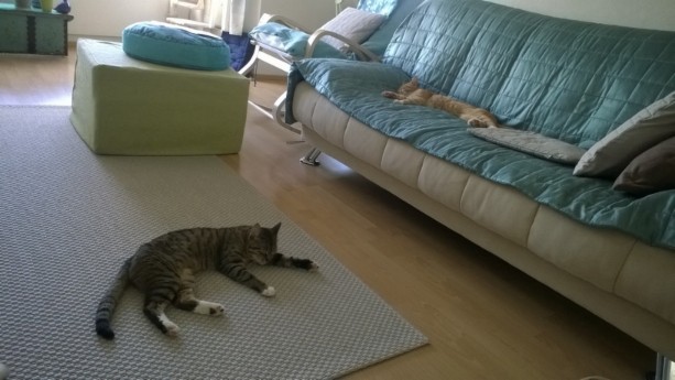 Meillä on ollut niin ylä- kuin alamäkeäkin uudessa kodissa. Muutimme aivan ihanan vanhemman rouvan luokse, mutta olemme aika leikkisiä ja touhotamme kokoajan, hänellä ei energia riitä meidän touhotuksillemme. Jos hän joutuu olemaan pitkän päivän pois kotoa olemme supervillejä, kun ihana ihmisemme saapuu vihdoin kotiin.