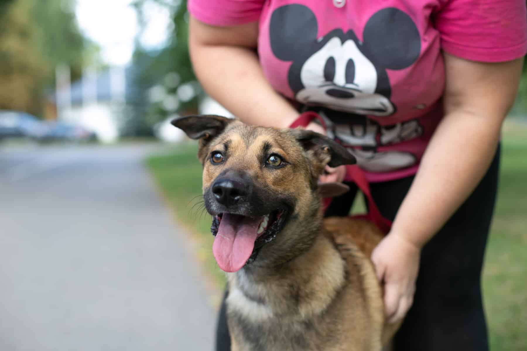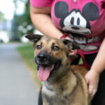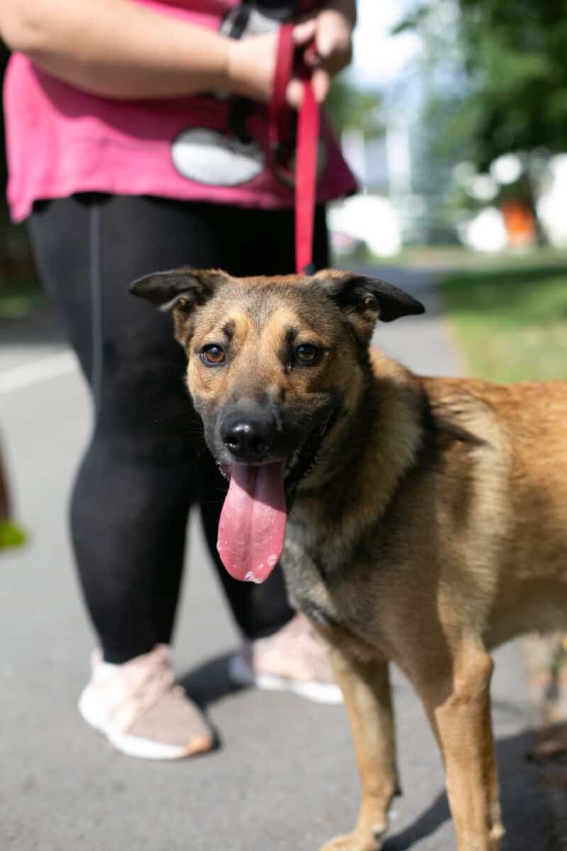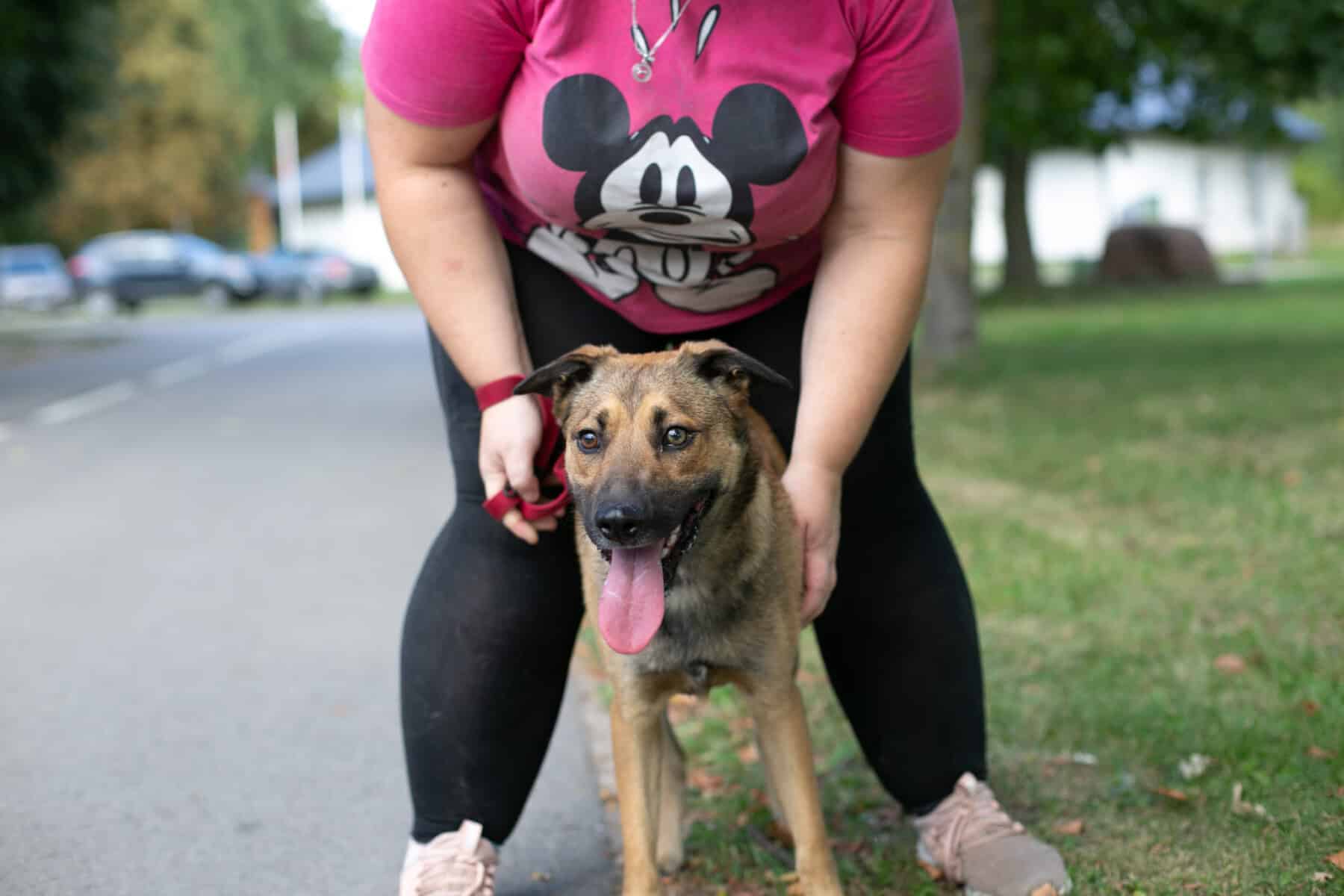 Pet Rescue Finlandin vapaaehtoiset kävivät täällä ulkoiluttamassa meitä. Juuri ne, jotka tuossa alussakin höpöttivät. Lähden aina mielelläni vapaaehtoisten mukaan ulkoilemaan eikä tämäkään kerta ollut poikkeus! Ulkoiluttajani mielestä olen oikea timantti. Hyppäsin suoraan hänen syliinsä ja annoin pusuja. Olen kuullut, että pusut ovat oiva tie näiden koirahullujen sydämiin. Vaikka ulkoilu toikin eteeni paljon tärkeitä haisteluhommia, olin myös valmis rauhoittumaan ja kävinkin köllimässä vapaaehtoisen sylissä kesken ulkoilujen.