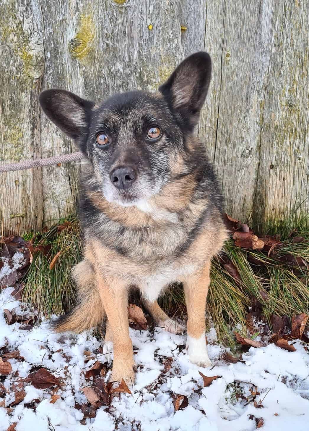 Herranen aika, miten minä olen suloinen, sanoivat uudet vieraat täällä tarhan vapaaehtoisen maatilalla, jossa olen hoidossa ulkona koirankopissani. Olen luonnossa niin paljon erikoisemman näköinen seniori kuin kuvissa. Olen miniatyyrinen saksanpaimenkoira.