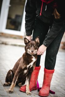 Tulimme tarhalle siskoni (Mokacina) kanssa oloista, jossa meistä ei pidetty huolta. Jouduimme asumaan ulkona ketjuun kykettyinä. Aina ei ollut edes vettä, saati ruokaa tarjolla. Haukuimme, jotta joku kuulisi ja tulisi auttamaan. Nyt olemme turvassa ja meistä pidetään huolta, mutta unelmoimme huolehtivasta ja rakastavasta kodista, johon mieluusti olisimme molemmat tervetulleita. Olemmehan olleet koko elämämme yhdessä.