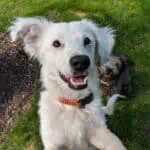 Minut tuotiin kotihoitoon tuolta tarhan ”päiväkodista”, jossa meitä ylijäämäpentuja oli piha täynnä. Sinne olin päässyt pikkuiselta kunnan tarhalta, joka joutuisi lopettamaan koiria karanteeniajan loputtua. Kyllä minulla on ollut moninainen onni! Kotihoidossa on kivaa! Leikin ihan hurjasti parhaan ystäväni Nallen kanssa ja kuuntelen kiltisti, kun perheen vanha koira komentelee minua.
