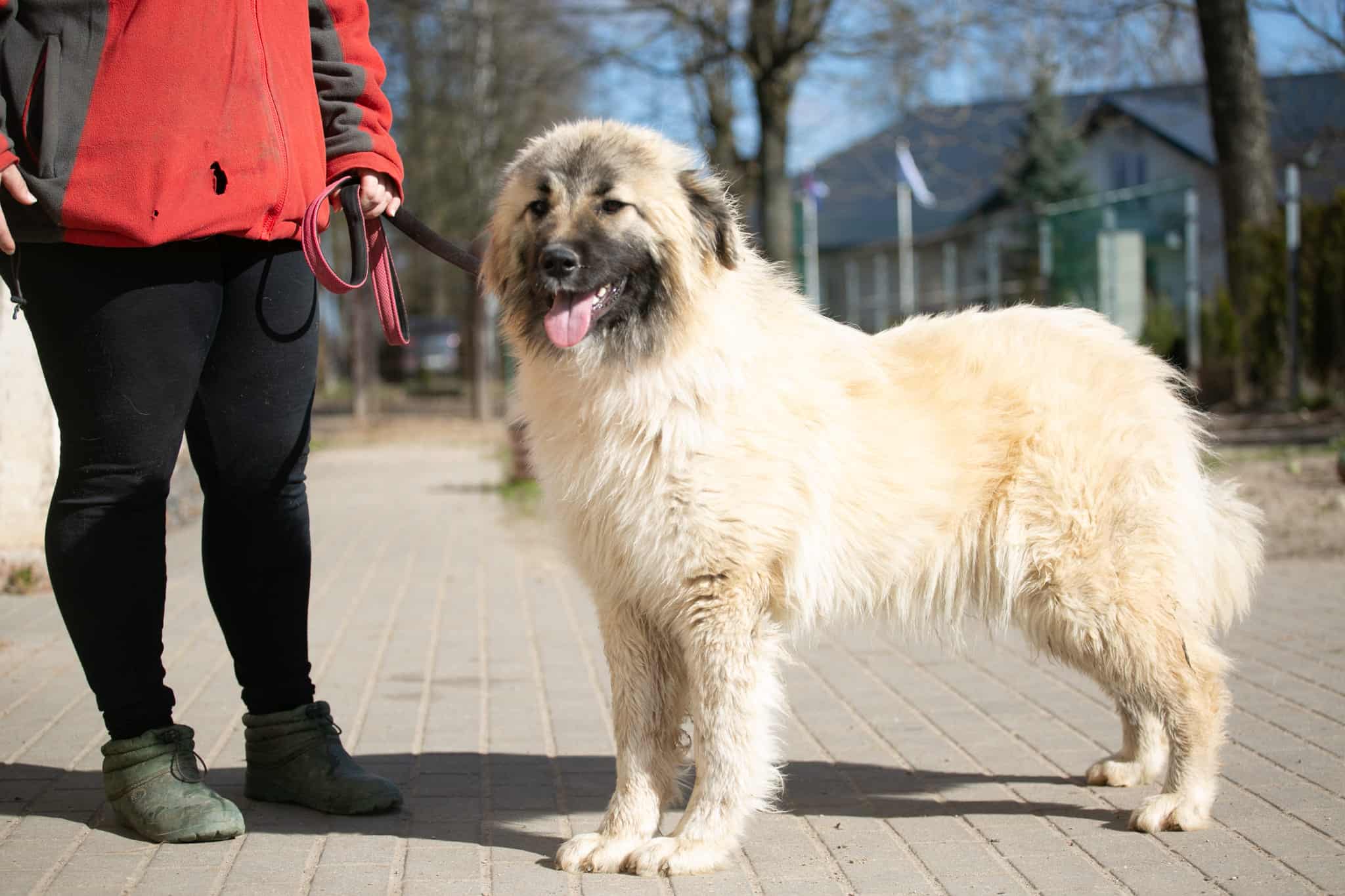 Päädyimme tänne Penkta Kojan tarhalle siskoni Alpakan kanssa, koska meidän omistajamme menehtyi eikä kukaan muu ei voinut pitää meistä huolta. Alkuperäinen suunnitelma oli kasvaa pelottomaksi, pelottavaksi ja luultavasti vihaiseksi vartijaksi, joka suojelee taloa pahoilta ihmisiltä. Se ei mennyt aivan niin, koska kun vapaaehtoiset tulivat vapauttamaan meidät kahleista, otimme heidät vastaan avosylin ja häntää heiluttaen.