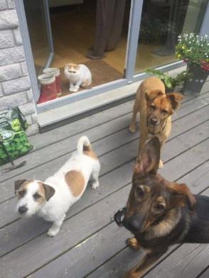 Minulla on täällä toisena koirakaverina jackrusselin terrieri ja se haluaa aina varastaa kaikki lelut minulta, mutta en ole siitä moksiskaan.