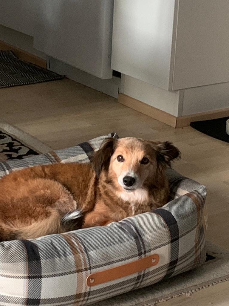 Muutenkin olen varsin aktiivinen tapaus ikäisekseni. Syynsä voisi olla ainakin niillä rakastamillani pehmoisilla pedeillä, joissa nautin makoisia unia, ja joiden jälkeen jaksan peuhata. Myös lapsia olen päässyt tapaamaan ja sain kehuja käytöksestäni. Autossa osaan kulkea hienosti ja välillä olen päässyt ihan kunnolla kylille, kaupungille ja jopa kauppakeskukseen. En minä ole hälinästä moksiskaan vaan kuljen rauhallisesti hoitajani mukana. En hätkähdä myöskään sitä, jos jään yksin kotiin muutamaksi tunniksi.