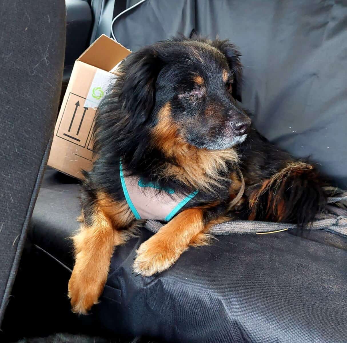 Pohdittuani asiaa minusta tuntuu, että osasyy sille, miksi minua jännittävät uudet asiat, johtuu rankasta menneisyydestäni. Minut löydettiin neljän muun koiran kanssa hylätystä maalaistalosta, jossa elimme nälkiintyneinä vailla kenenkään hoivaa ja huolenpitoa. Siitä ei ole tietoa, miten menetin toisen silmäni, koska se oli jo poissa, kun minut haettiin pois ihanien vapaaehtoisten toimesta. Nämä muut koirat, jotka elivät kanssani hylättynä, ovat jo löytäneet kodin. Tässä vain pohdiskelen, että koska minun vuoroni mahtaa olla? Toivottavasti pian!