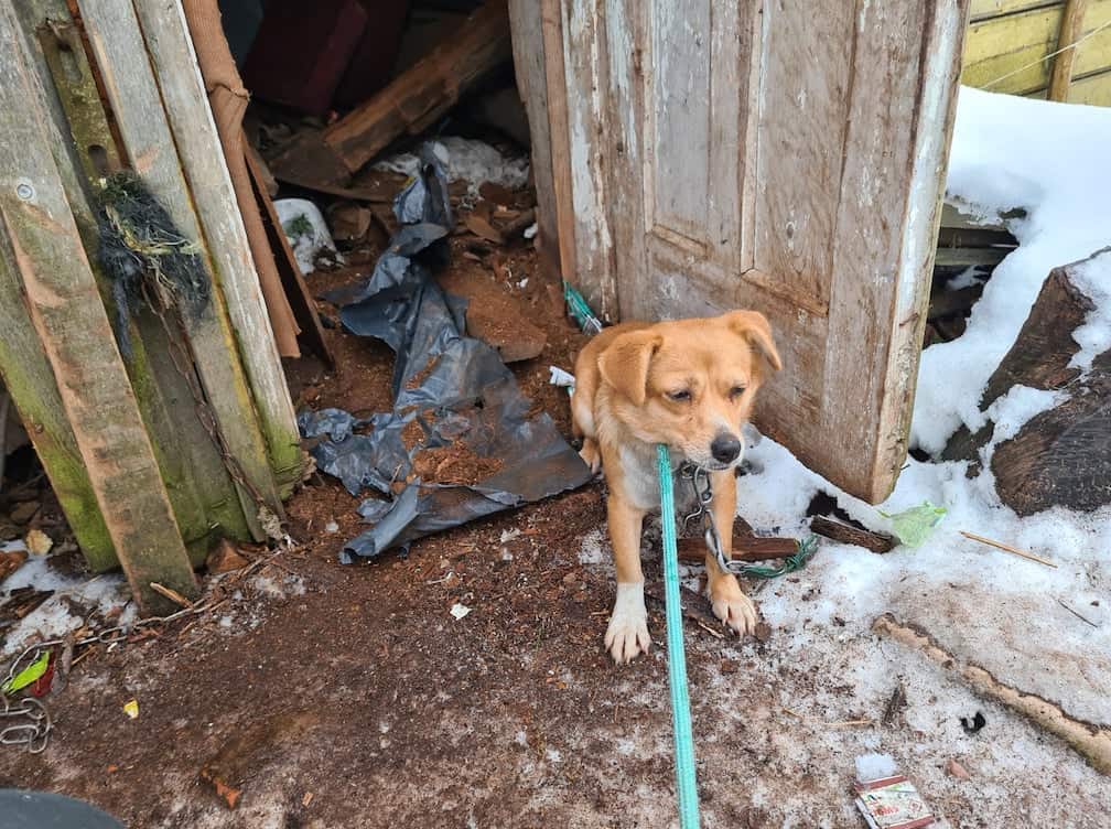 Kun eläinsuojelijat vihdoin löysivät meidät olin todella arka ja peloissani. En tiennyt oikein miten reagoida vieraisiin, joten koin turvallisimmaksi ratkaisuksi puolustaa itseäni ja pyrkiä pakosalle ja niinhän siinä sitten kävikin: Juuri, kun minut oltiin saatu irrotettua kamalista ketjuistani, päätin lähteä pakoon pelastajiani. Näin jälkeenpäin ajateltuna se oli minulta melko tyhmä liike, mutta enhän minä siinä tilanteessa voinut tietää, olivatko ne ihmiset hyvillä aikeilla vaiko eivät.