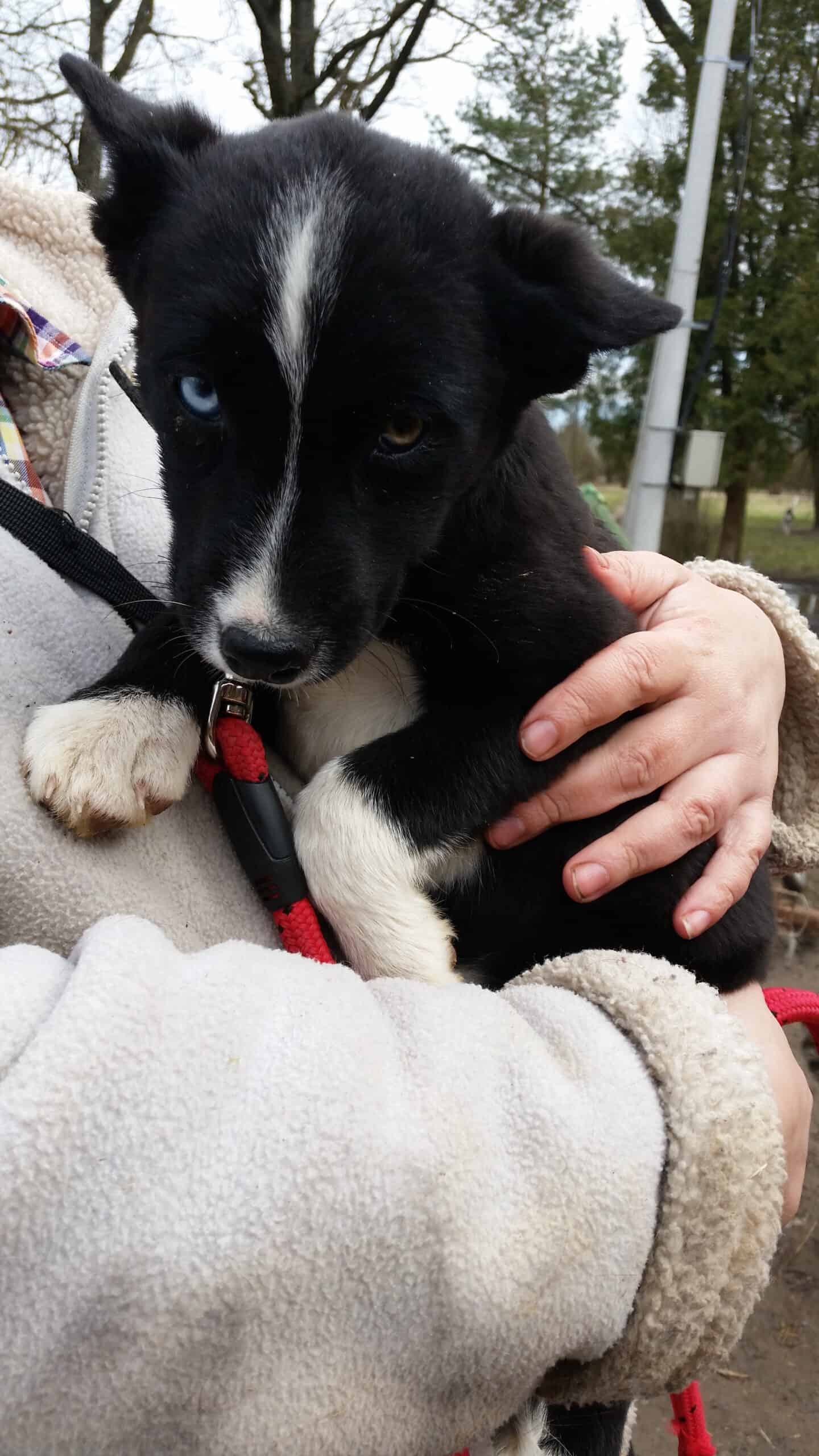Äitini on melkein husky. Minun äiti on ihan kiva, mutta ne ihmiset ei ole. Ne kauppasi meitä pentuja vaikka kenelle ja oli heittämässä meidät pois näin pieninä. Eläinsuojeluyhdistyksen ihmiset tuli sinne pihalle pelastamaan yhtä toista koiraa ja ne otti minut salaa mukaansa. Sanoivat olen söpö kuin karkki. Sanoivat, etteivät voineet jättää minua sinne kauhealle pihalle, kun eivät voineet tietää, olenko elossa vai missä seuraavan kerran, kun tulevat sinne. Minut on vähän kuin varastettu!