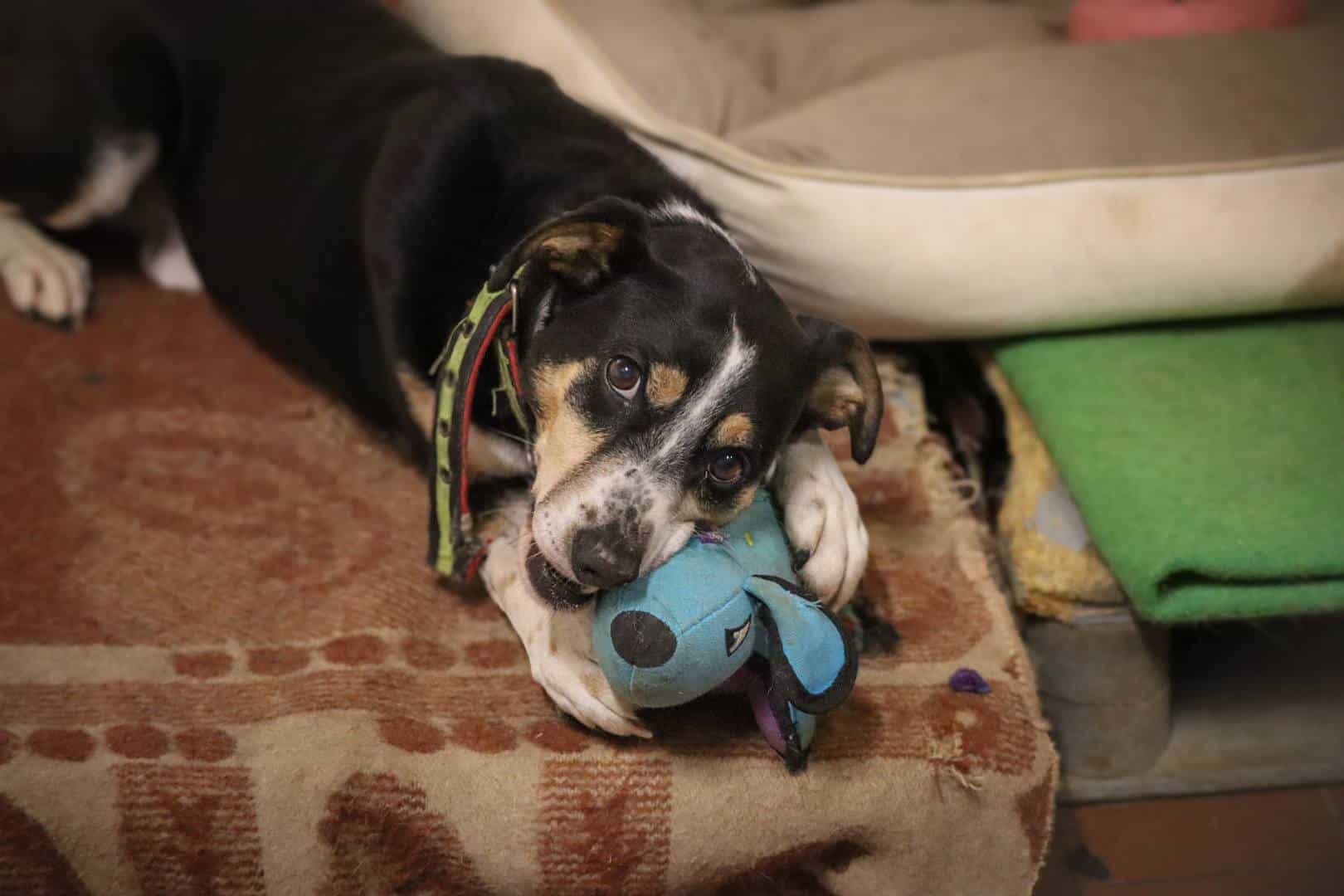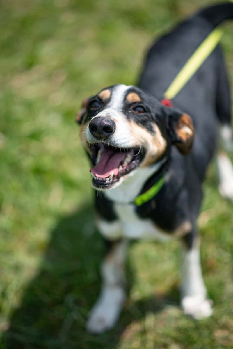 Minä olen Migelis, super suloinen ja reipas touhottaja! Ihmiset sanovat, että minulla on ollut rankka alku elämälle. Minä en sitä enää ajattele, elämä on nyt ja minä rakastan joka hetkeä. Ennen kuin päädyin tarhalle, elin aivan yksin. Minut löydettiin vanhan maatilan takaa, ketjun päässä. Ketju oli niin lyhyt, että hädin tuskin pystyin liikkumaan. Kukaan ei nähnyt minua, eikä kukaan tullut. Etujalkani oli silloin jo rikki, vääntynyt ihan väärään suuntaan. Se sattui ja paljon.