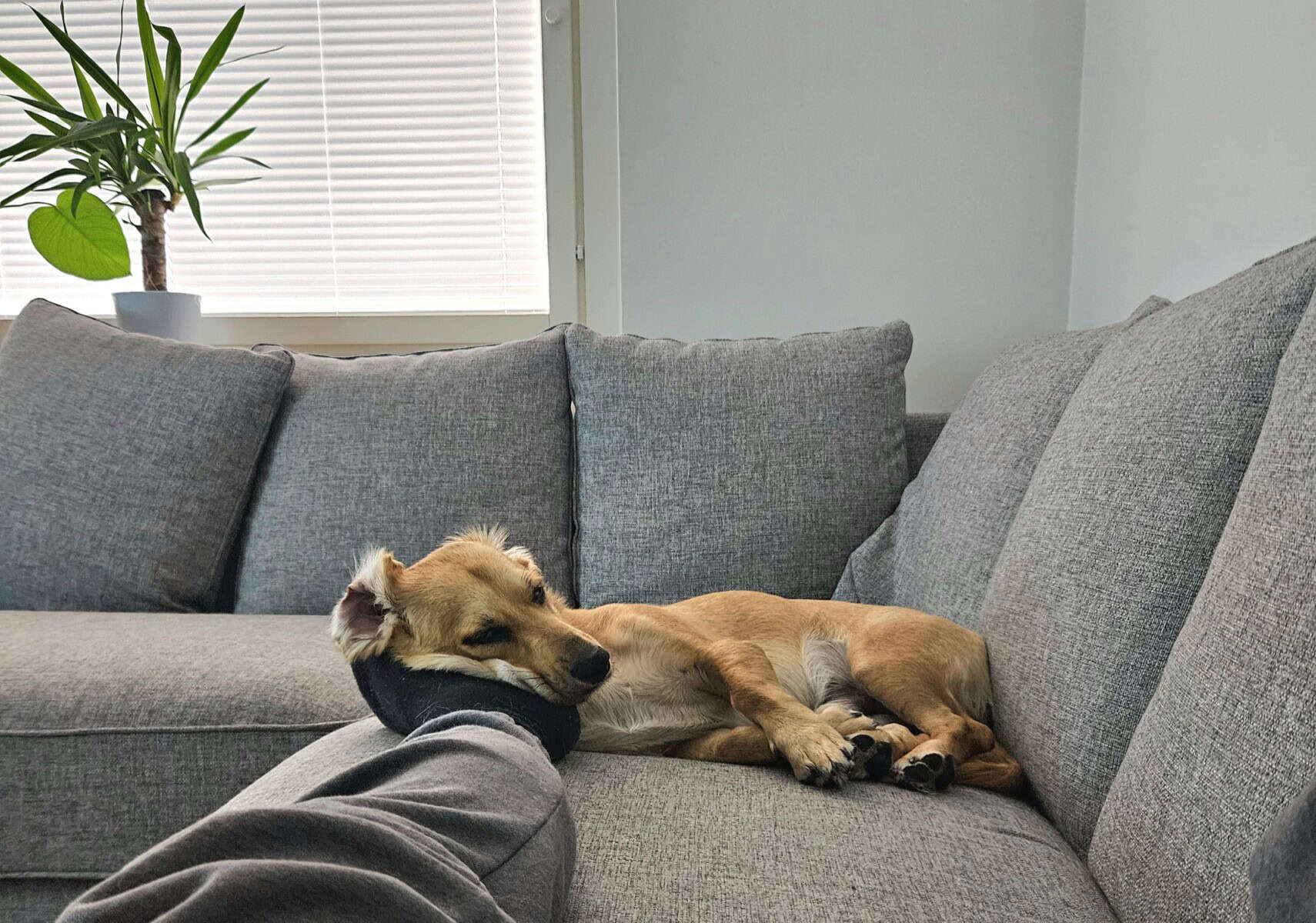 Hammastelut omaa ihmistä kohtaan ovat tosiaan loppuneet, mutta vieraiden sormet vaikuttavat erilaisella tavalla herkullisilta, joten niitä on ollut hauska hammastella. En pelkää vieraita, päinvastoin tykkään ihmisistä. Uudessa kodissa tulee varautua opettamaan minua suuntaamaan hammasteluenergiani muuhun sallitumpaan toimintaan.