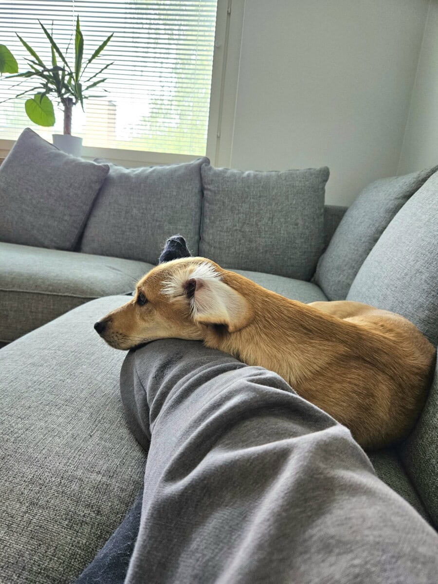 Kuukaudessa olen ottanut pikkuisia töppöjalkaisen askelia muutamissa kotikoiran jutuissa. Lenkeillä olen oppinut toisinaan kävelemään ilman, että vetelen jatkuvasti hihnaa. Näitä tilanteita tapahtuu silloin, kun ympärilläni ei ole ärsykkeitä. Ymmärrän myös muutamia pyyntöjä, kuten ”istu” ja ”tänne päin”.