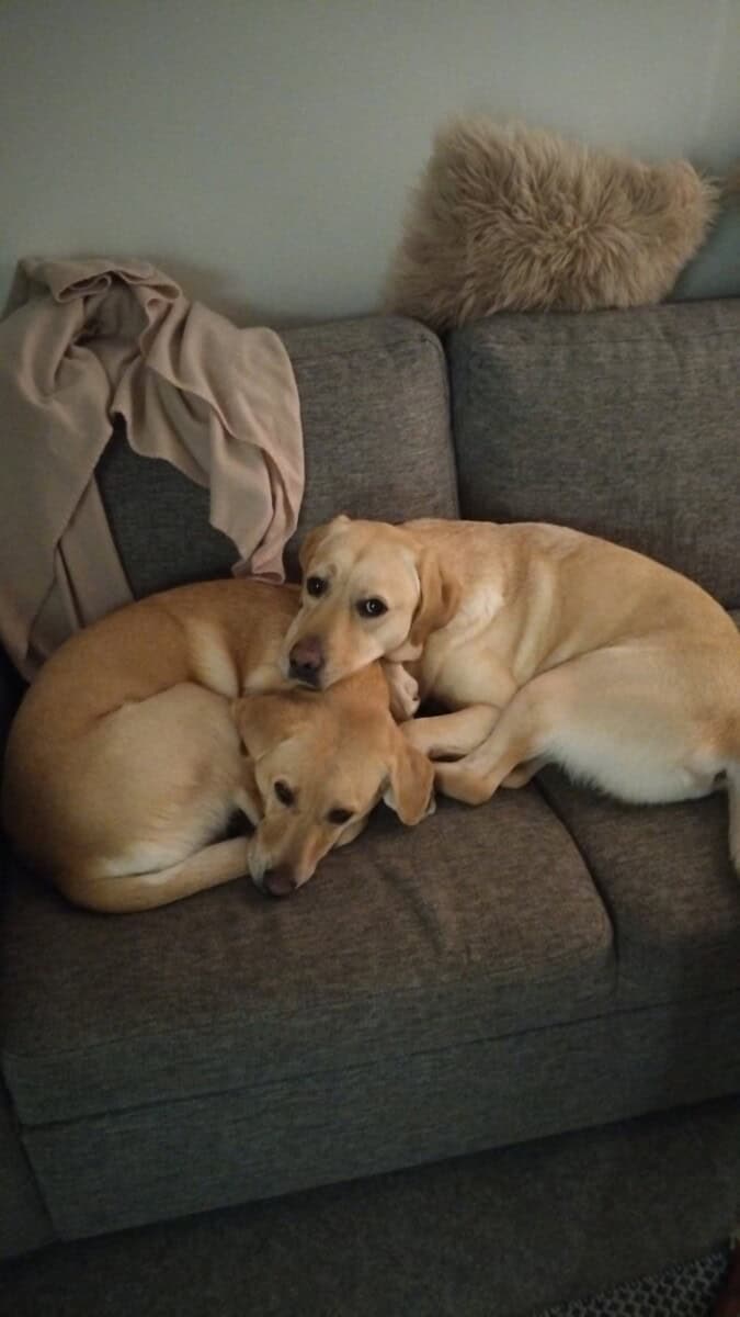Olen tähän mennessä asunut toisen koiran kaverina ja olemme tulleet tosi hyvin juttuun. Kuvastakin näet miten makoilemme toistemme päällä. Puistoissakin olen käynyt ja tulen sielläkin toimeen muiden koirien kanssa. Toki yksi pahe minulla on. Saatan olla hiukan mustasukkainen, jos koirakavereita rapsutetaan. Mutta hei kukapa ei olisi! Sehän kun on meikäläisen lemppari juttu. Tällöin pusken väliin, jotta rapsut saapuisivat oikeaan osoitteeseen, eli omaan nassuun.