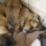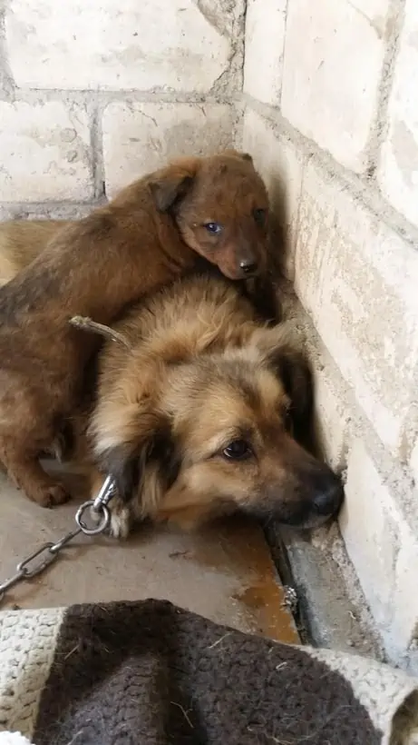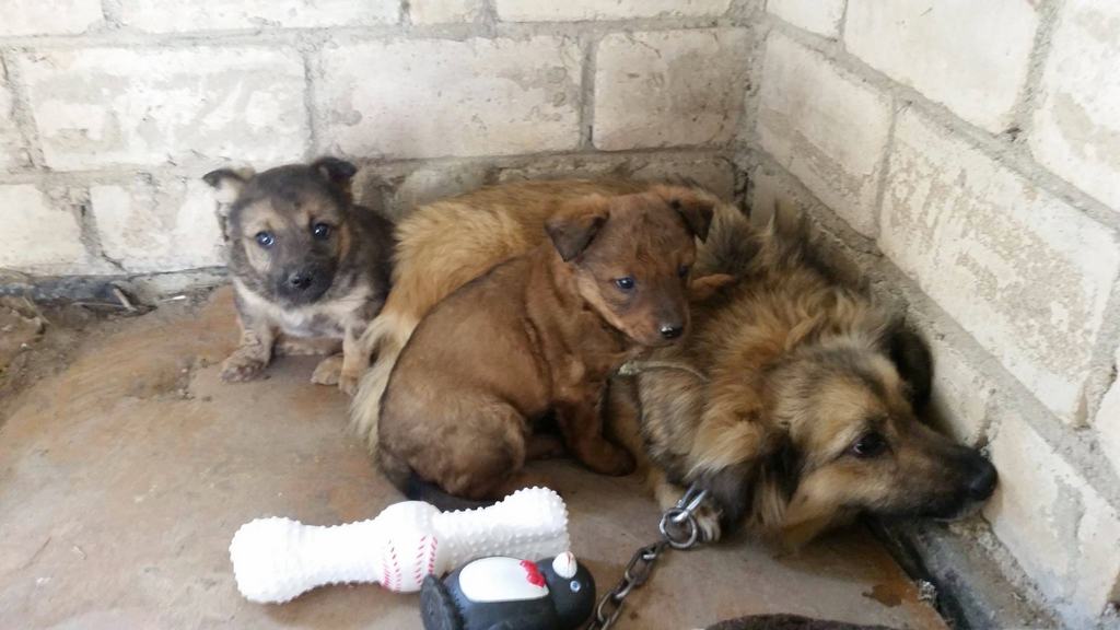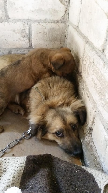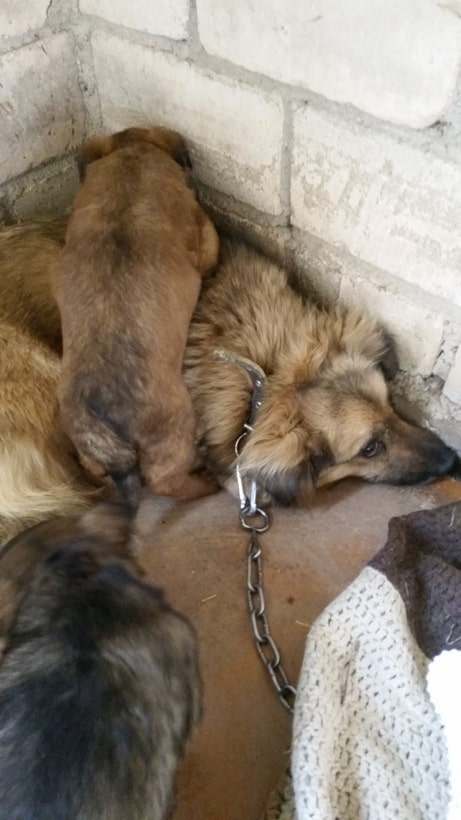 Onneksi löysin navetan, jonka ovi oli auki ja pääsin sinne sisälle. Synnytin ihanaiset pienet tyttöpennut. Ihmiset löysivät minut ja onneksi soittivat eläinsuojeluyhdistykseen. Uhkasivat kyllä kaikin tavoin päästä meistä eroon ja se oli pelottavaa. Pelkään ihmisiä tosi paljon. Onneksi meidät vietiin turvaan.