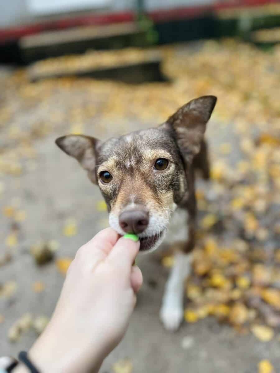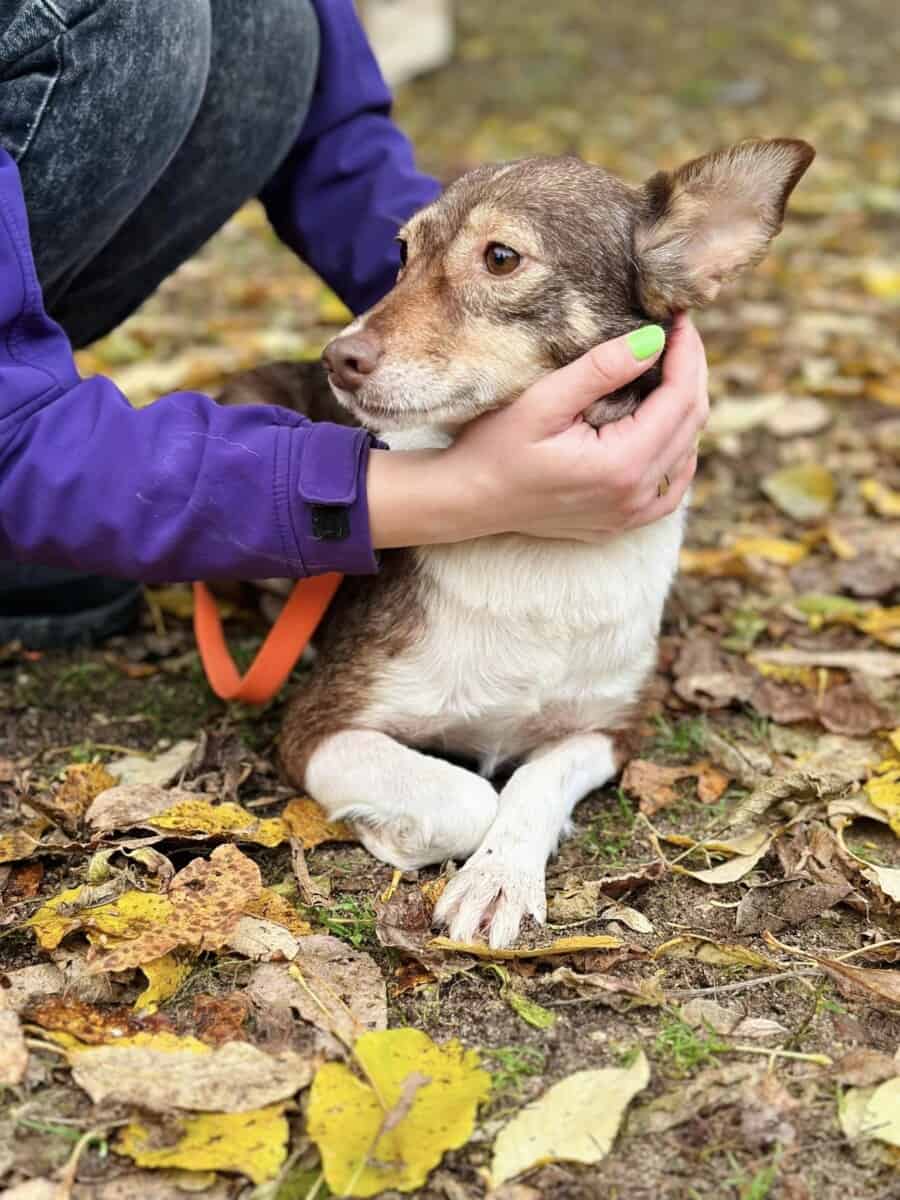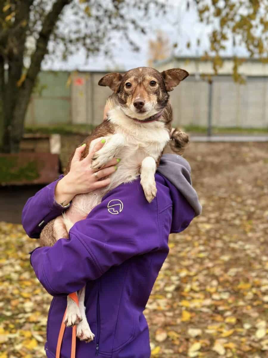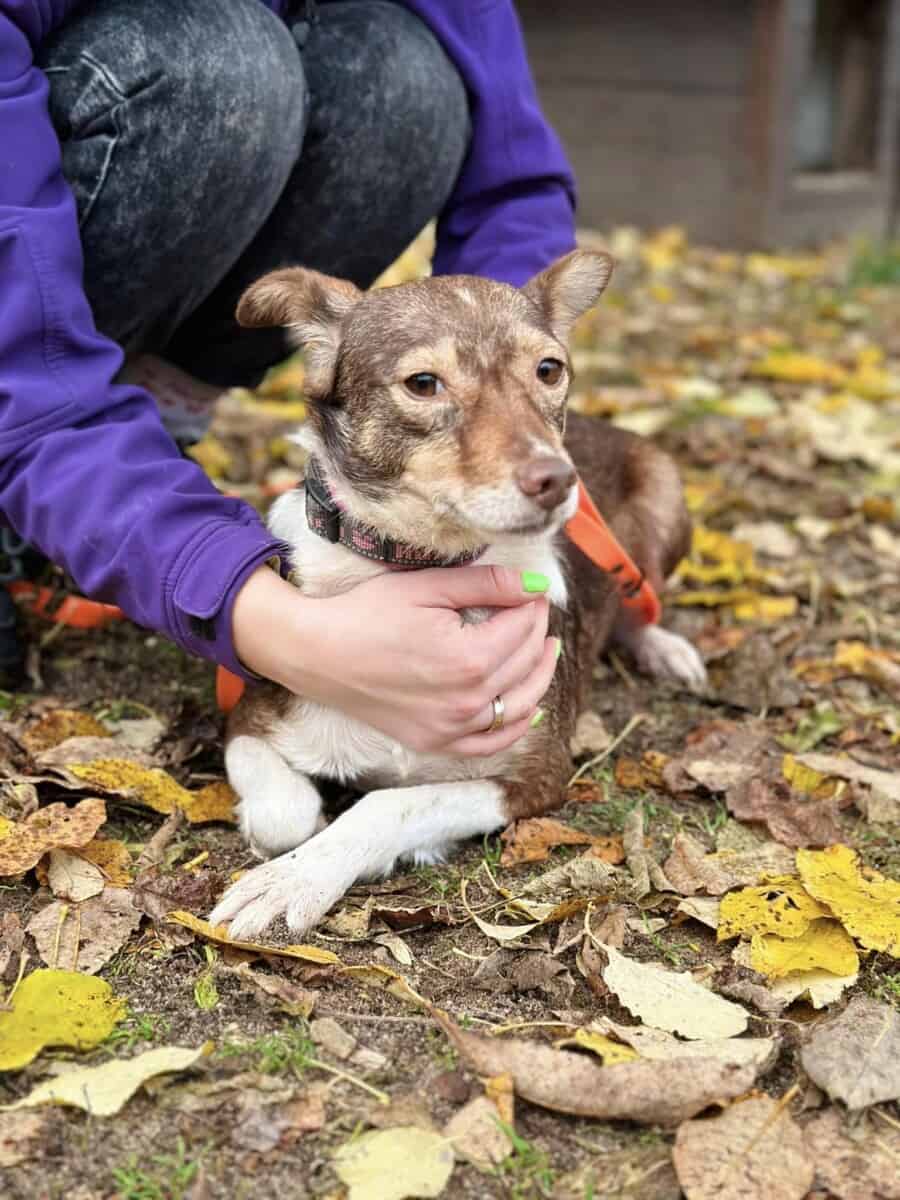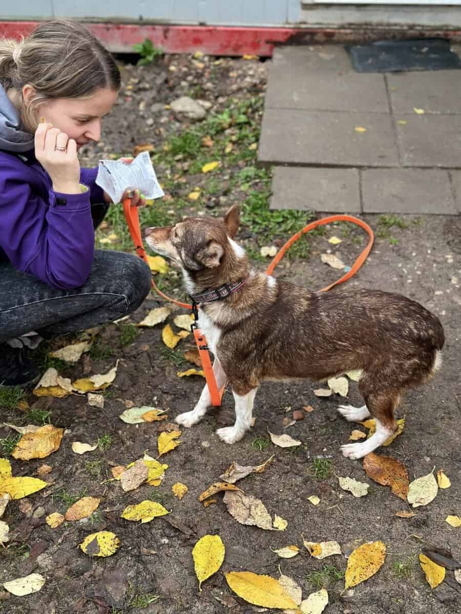 Alkuni uudessa kodissa Suomessa tulee varmasti olemaan haasteellinen, sitä on turha kieltää tai kierrellä. Tarhalla minun on kuitenkin haastavaa edistyä, sillä tarvitsisin rauhallista ja kahdenkeskistä aikaa ihmisten kanssa päästäkseni eteenpäin. Olen päässyt harjoittelemaan esimerkiksi hihnassa kävelyä. Annan kiltisti laittaa pannan kaulani ympärille ja kantaa itseni ulos. Jotkut päivät ovat helpompia kuin toiset. Silloin uskallan tutkia ympäristöäni laajemmin ja haistella uusia tuoksuja. Toisina hetkinä taas kaikki tuntuu olevan liikaa enkä uskalla lähteä mihinkään. Välillä on itsevarmempi olo ja välillä sisu menee todella kaulaan.
