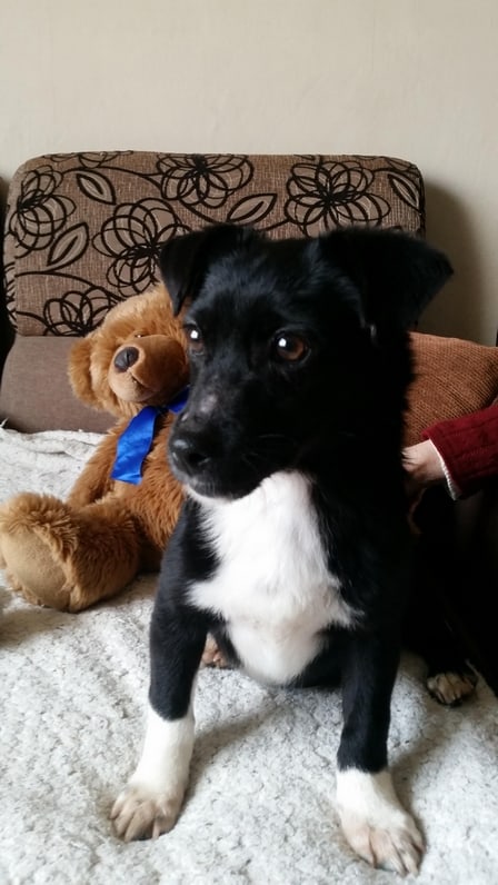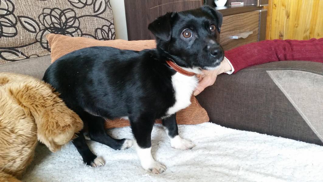 Nuori mies pyysi hakemaan pois isoäitinsä koirat, kun isoäiti ei niistä pysty enää huolehtimaan. Koirat olivat äitikoira ja 4 kk:n ikäinen lapsi. Se lapsi olen siis minä.
