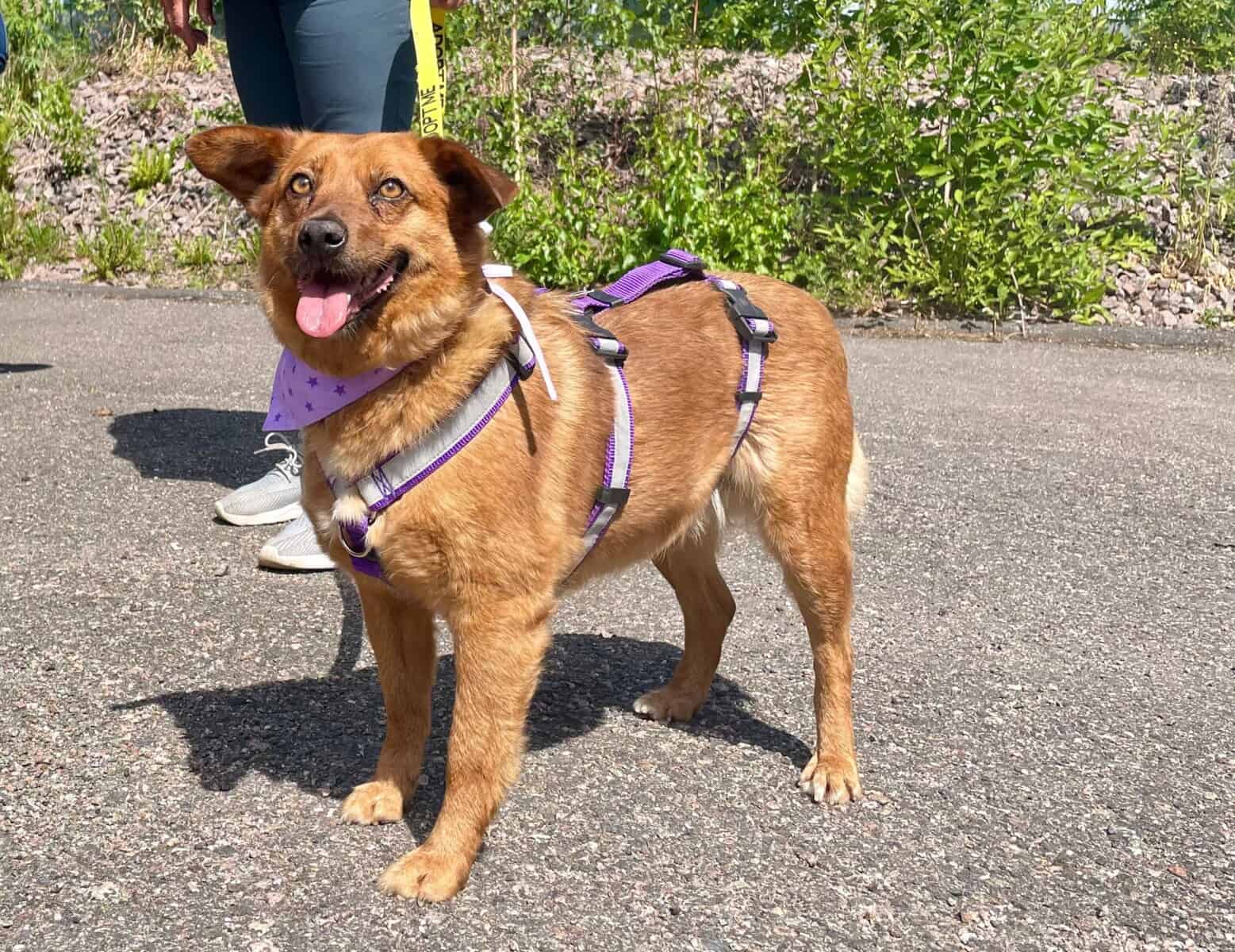 Minä tyttö täällä taas kirjoittelen. Olen ollut kohta vuoden tarhalla, eikä kukaan ymmärrä miten kummassa en ole jo löytänyt kotia. Olen koko tarhan ilopilleri ja joka ikinen päivä otan työntekijät innolla vastaan. Tänne tuli vieraita Suomesta kokonaiseksi viikoksi ja voi että kun minä olen saanut paljon kehuja kultaisen luonteeni ansiosta. Olen varsinainen koomikko ja teen hauskoja tempauksia joilla saan kaikille hymyn huulille. Saatan yhtäkkiä heittäytyä heinikkoon piehtaroimaan ja röhkin kuin possu. Tulen myös hyvin toimeen muiden koirien kanssa, ja en jaksa juurikaan välittää jos joku minulle rähjää.