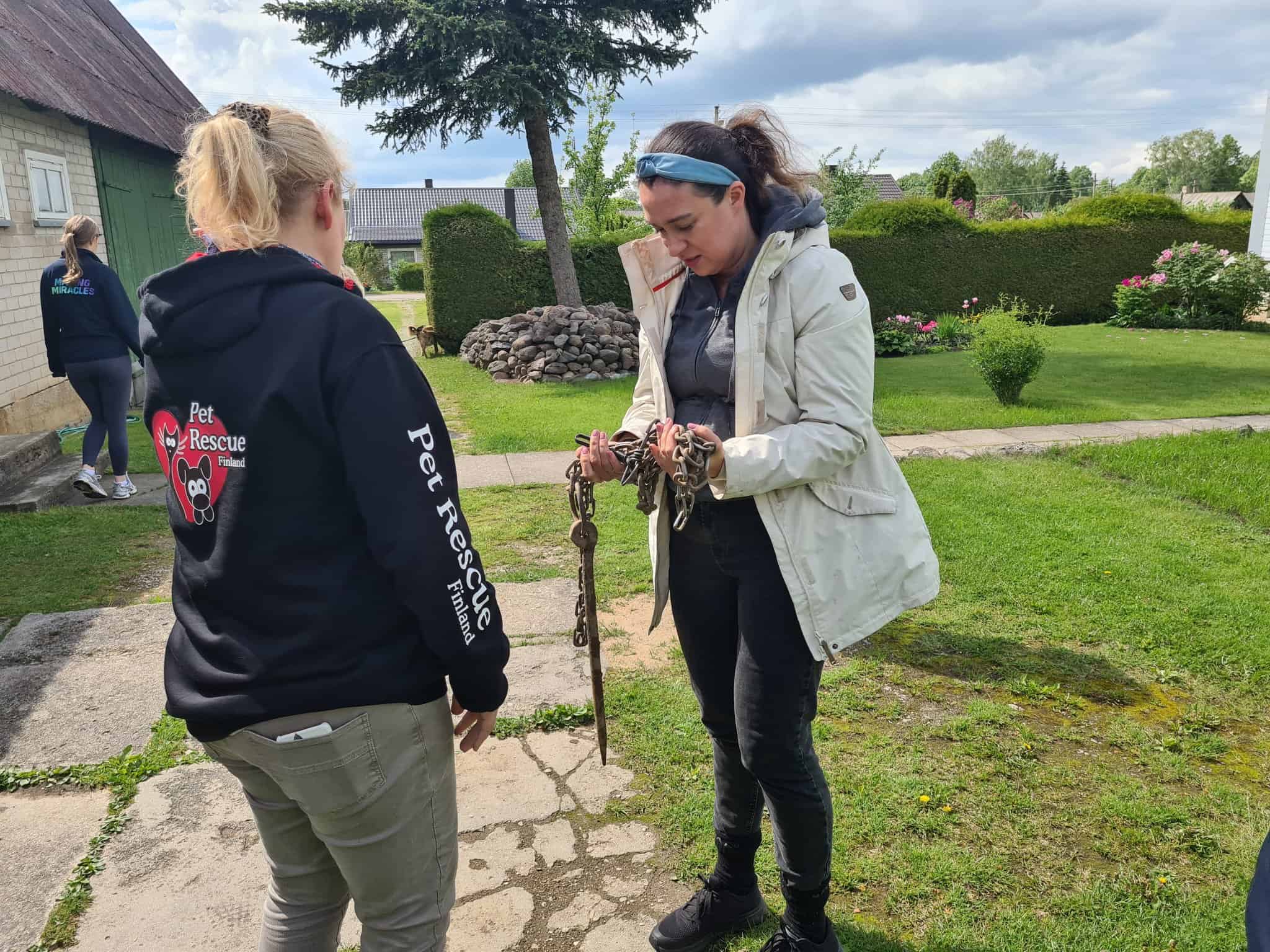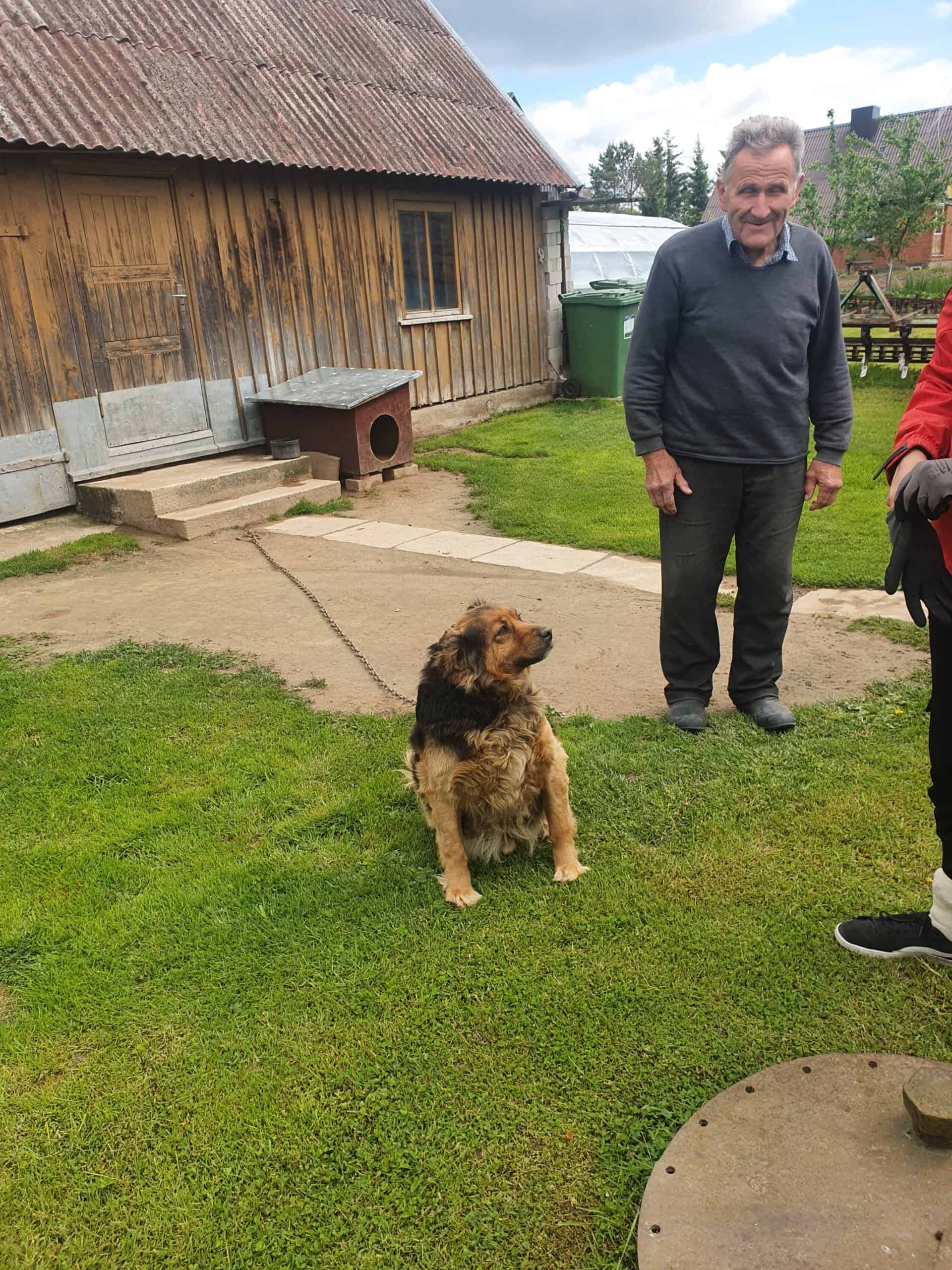 Olen asunut koko elämäni pienessä kylässä ketjukoirana. Ensimmäiset omistajani muuttivat pois ja jättivät minut jälkeensä. Talon uudelle asukkaalle he kyllä sanoivat tulevansa hakemaan minut myöhemmin, mutta heitä ei koskaan kuulunut eikä näkynyt. Niinpä tämä mies on huolehtunut minusta siihen asti, kunnes hän ei enää ikänsä ja terveytensä puolesta jaksanut. Hän soitti Mazas Draugasin tarhalle, josta tultiin yhdessä Suomesta vierailulla olleiden PRF:n vapaaehtoisten kanssa vapauttamaan minut raskaista kahleistani.