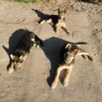 Aikaisemmin Liettuan kotihoitopaikassamme oli vanhempi koiranarttu, jolta me huligaanit otimme oppia. Matkimme häntä piirun tarkasti. Nyt me pöhkölaiset vaan otamme mittaa ja mallia toisiltamme. Onko se sitten hyvä asia, mene ja tiedä?! Meno on siis sen mukaista, kun kolmen paimenkoirataustaisen nuorukaisen kanssa kuvitella saattaa.