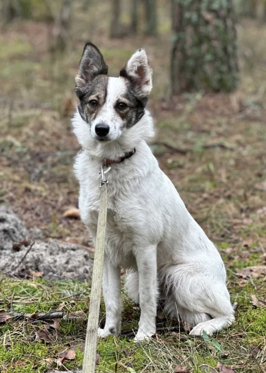 Päädyin Linksmosios Pedutes -koiratarhalle Liettuan Klaipedaan Vilnasta. Ihmiset heittivät koiria ja kissoja erään talon pihan aitojen yli yksi toisensa perään, kun olivat kyllästyneet huolehtimaan lemmikistään. Koska tämän pihan omistajat pitivät kaikki nämä eläimet, ihmiset kaiketi kuvittelivat, että se on hyvä tapa päästä eroon velvotteista. Näin pihalle ilmestyi pikkuhiljaa lähes kaksikymmentä koiraa. Seitsemän meistä tuotiin tänne turvakotiin. Kaikki muut kamuni ovat jo löytäneet kodin, mutta minä, ujopiimä-Pupa se vain edelleen etsin kotiani.