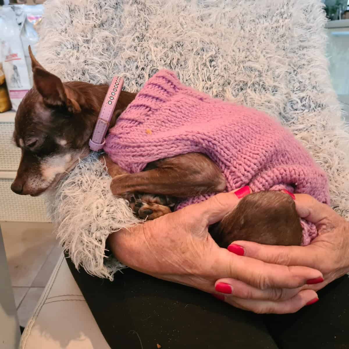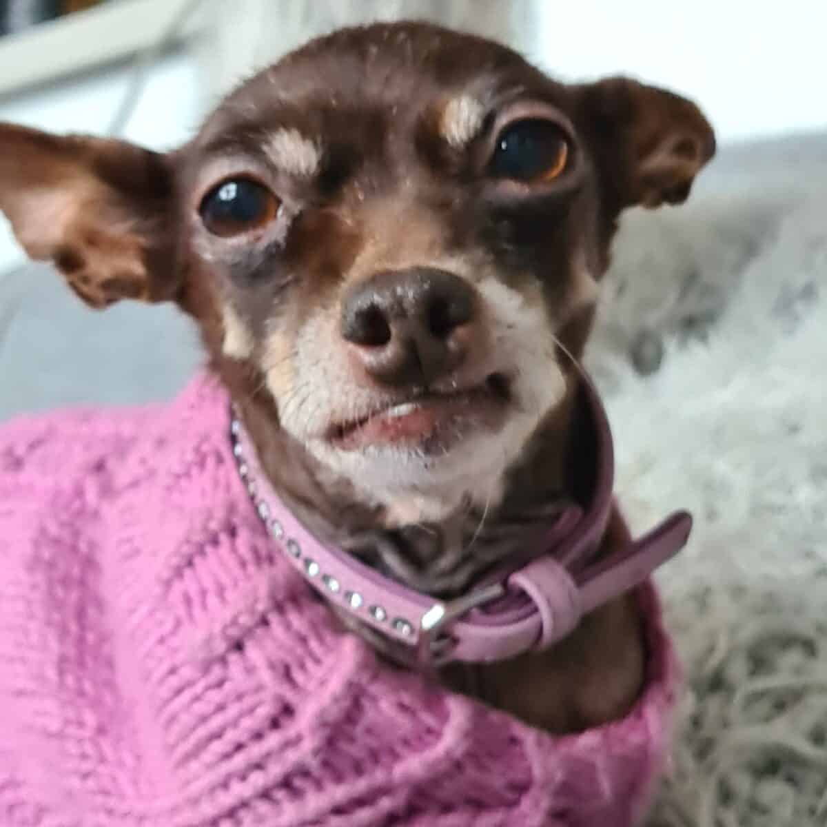 Ehkä tässä vaiheessa on hyvä mainita, että rotuni tunnetaan pienestä koosta ja rohkeasta luonteesta. Venäjän Toy on eloisa ja energinen rotu, joka rakastaa ihmisen seuraa ja kaipaa läheisyyttä. Minä en ole poikkeus: rakastan istua sylissä, herättelen huomiota hieman kissamaiseen tapaan tassuillani. Peittojen alla nukkuminen on aivan ihanaa. Rakastan kaikkea pehmeää ja lämmintä, kuten pörröpetejejä ja lämpimiä vaatteita. Nautin pitkistä aamu-unista. Minulla on suuri ego pienessä koirassa, ja puolustan kotiani ja rakkaitani rähinällä. Yleensä saan vastaan kuitenkin vain hyväntahtoisen hymyn ja sekös harmittaa mummokoiraa, joka haluaa niin kovin olla uskottava ja pelottava!