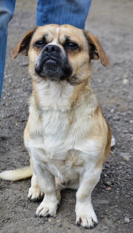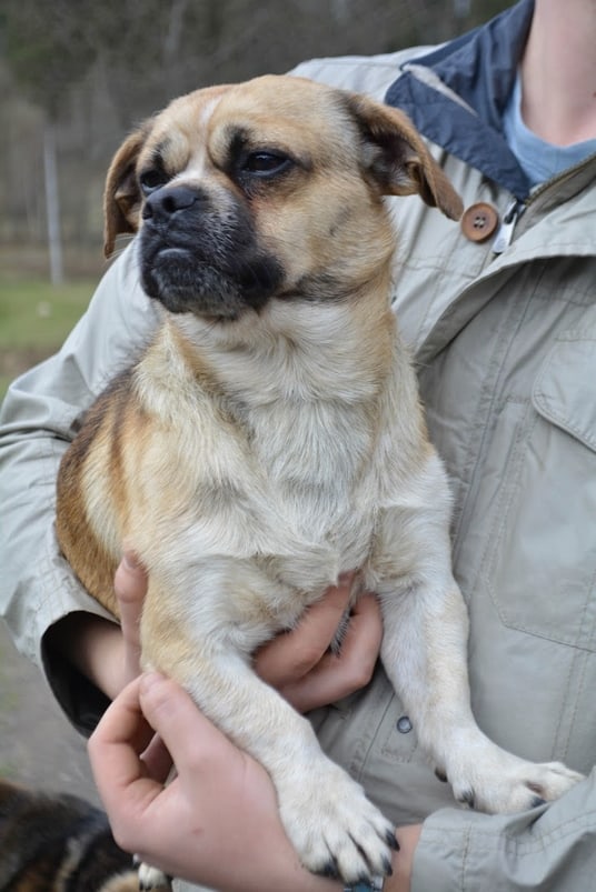 Sanoivat, että olen ihana pikku koira, rento ja huoleton heppu. Tykkään hengailla täällä olevien pentujen kanssa ja muidenkin kavereiden, aina lampaista lähtien. Vapaehtoisista on kivaa, kun seuraan aina mukana mitä puuhastellaan ja autan putsaamaan häkkejä ja haluan joka välissä hieman rapsutuksia. Olen siis kaikkien mielestä kompakti pikkupaketti ja nyt on minun aikani.