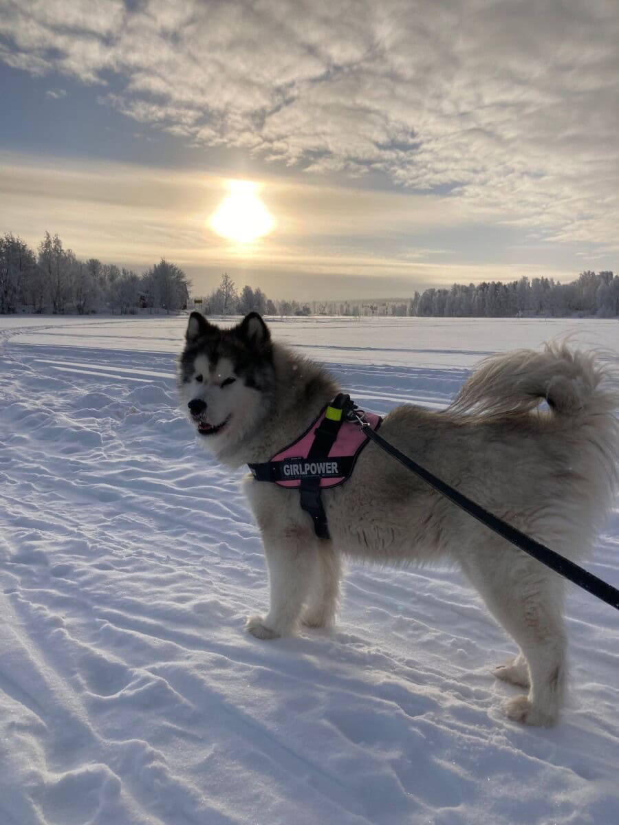 Moikka, mä oon Rauha – parhaassa iässä oleva, rakastettu ja muhkea alaskanmalamuutti-mimmi, jolla on kotikoiratausta suomalaisessa perheessä. Taustani poikkeaakin sivuilla olevista muista koirista, sillä tarkkaan ottaen en ole rescue, vaan kotimainen kodinvaihtaja. Annappas kun kerron vähän itsestäni ja kosmopoliitista elämästäni, niin tiedät, millainen ystävä olisin sinulle.