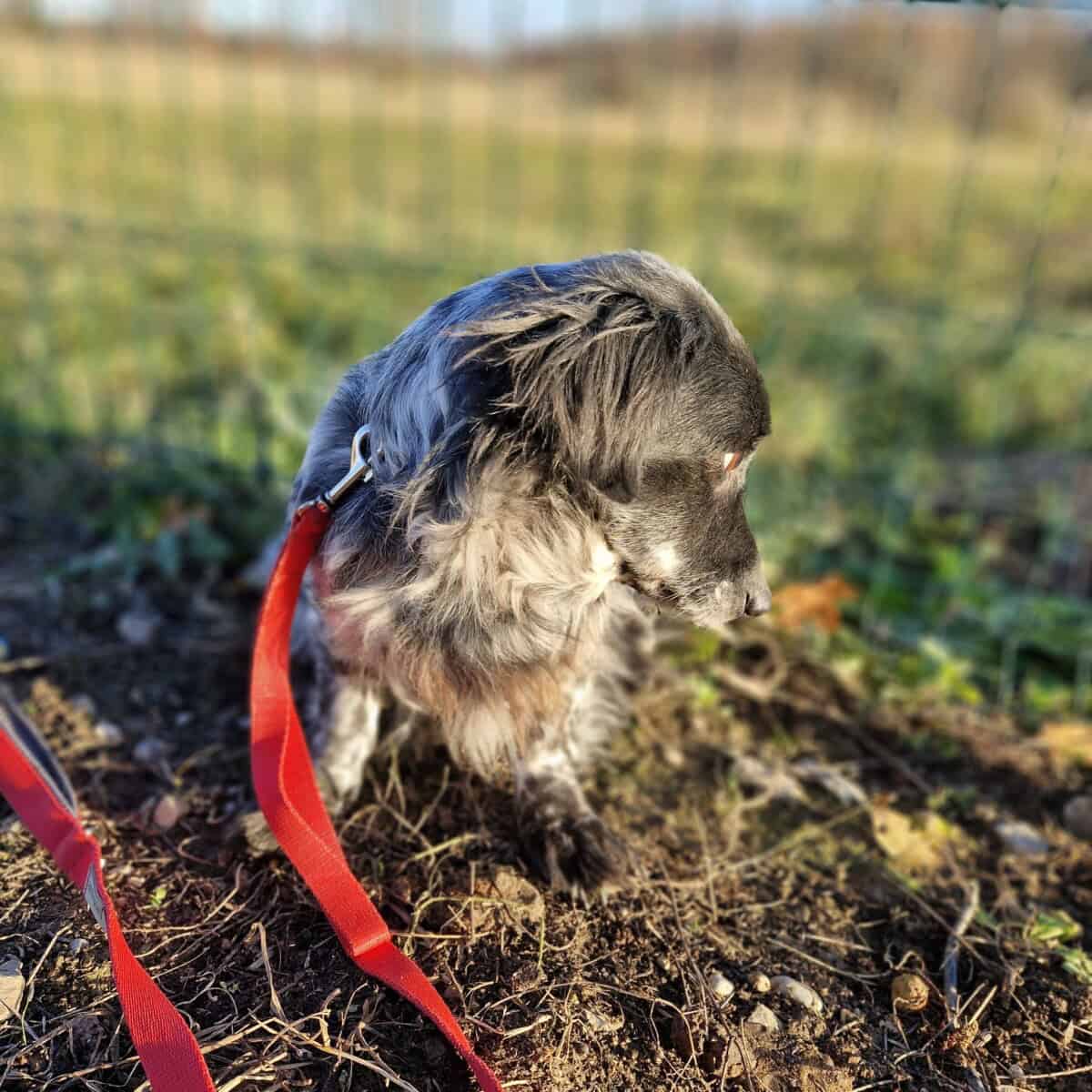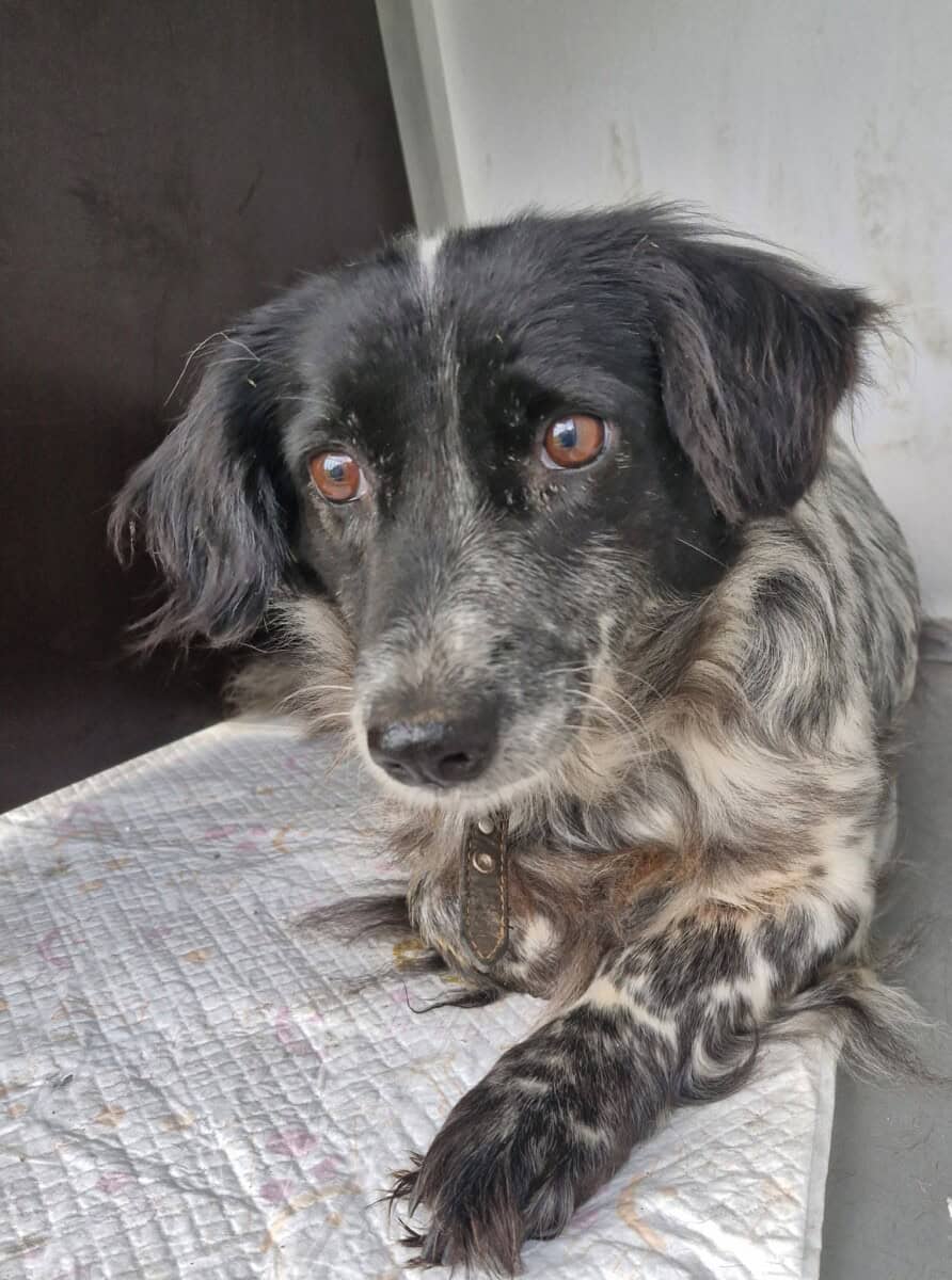 Minut on löydetty erään talon pihalta 15 muun koiran kanssa Pet Rescue Finlandin ja Mazas Draugasin vapaaehtoisten yhteisen pelastusoperaation yhteydessä. Asuin ulkona ketjuun kiinnitettynä ympärilläni vain leikkaamatonta ruohoa, roskaa ja likaa. Vaikka elämäni muuttui peruuttomattomasti enkä vielä ole vakuuttunut siitä, että maailma niin monine ihmisineen on turvallinen paikka, olen päättänyt yrittää rohkaistua.