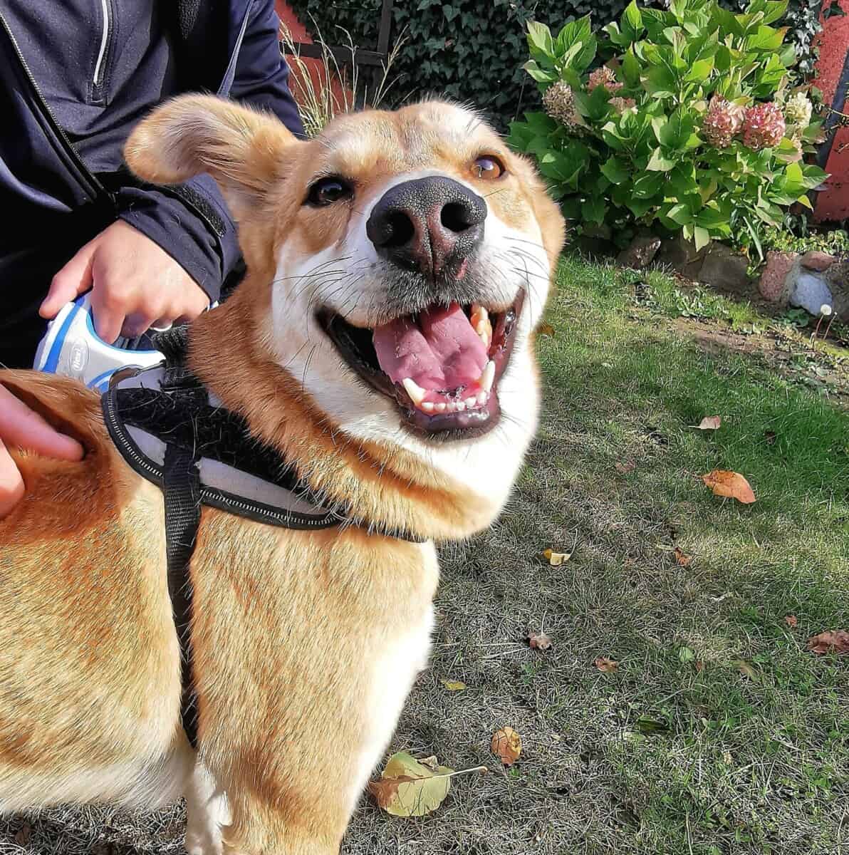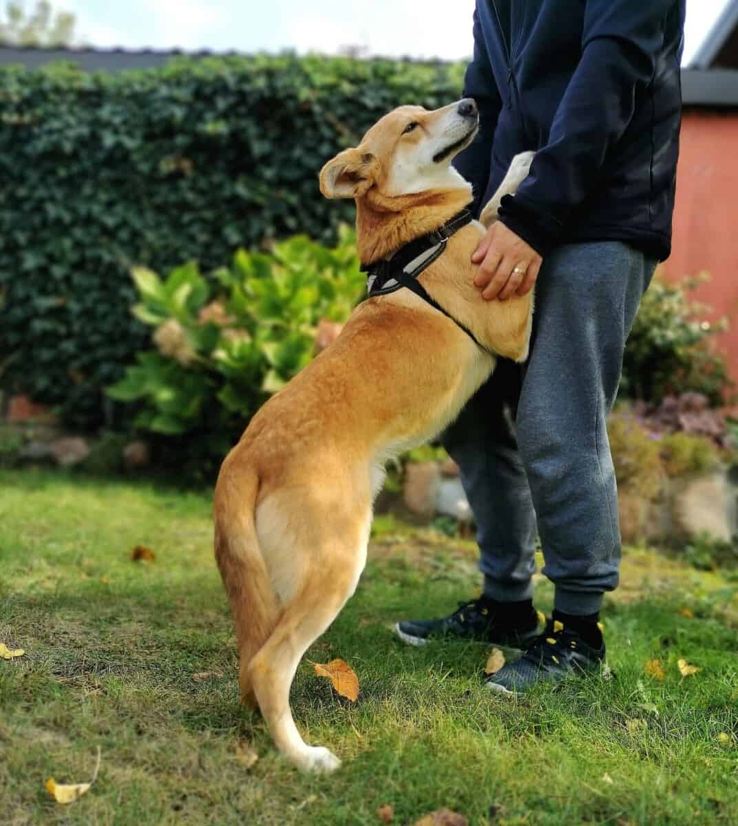 Nyt olen saavuttanut jo sen pisteen, että olen melko itsevarma tuttujen ihmisten kanssa, mutta pelkään edelleen täysin outoja vieraita. Minusta sanotaan, että tarvitsen vielä paljon ihmisen tukea. Se näyttäytyy konkreettisesti niin, että seison kahdella jalalla nojautuen ihmiseen. Tämä tarkoittaa myös sitä, että luotan ihmiseen, se on itsessään arvokasta, sillä monet kohtalotoverini ovat menettäneet luottamuksen ihmiseen ja silloin tie kotikoiraksi on pidempi.