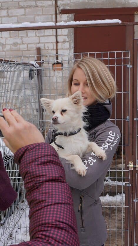 Olin vähän ujo, mutta vähitellen tykästyin kaikkiin ihmisiin. Moni ihminen oli minusta kiinnostunut, mutta he olisivat halunneet pentutehtailla minulla lisää tällaisia pieniä, kauniita koiria. Tarhalta eivät suostuneet antamaan minua tällaisiin koteihin. Ajattelivat, että leikkauttavat minut ensin ja sitten ehkä parempi koti löytyisi Suomesta.