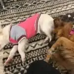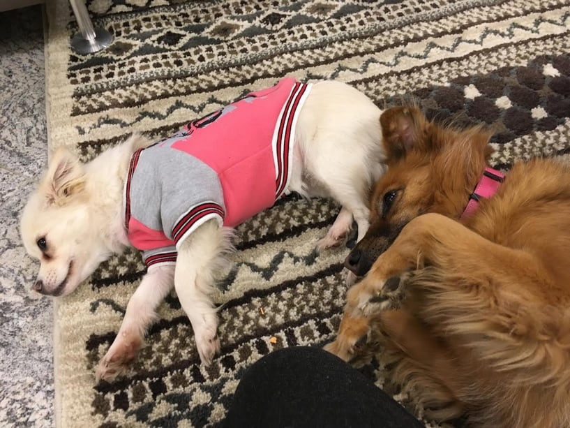 Olen täällä neljän muun koiran ja kahden kissan kanssa. Olen niin onnellinen, kun on paljon koiria ja ihmisiä ympärillä.