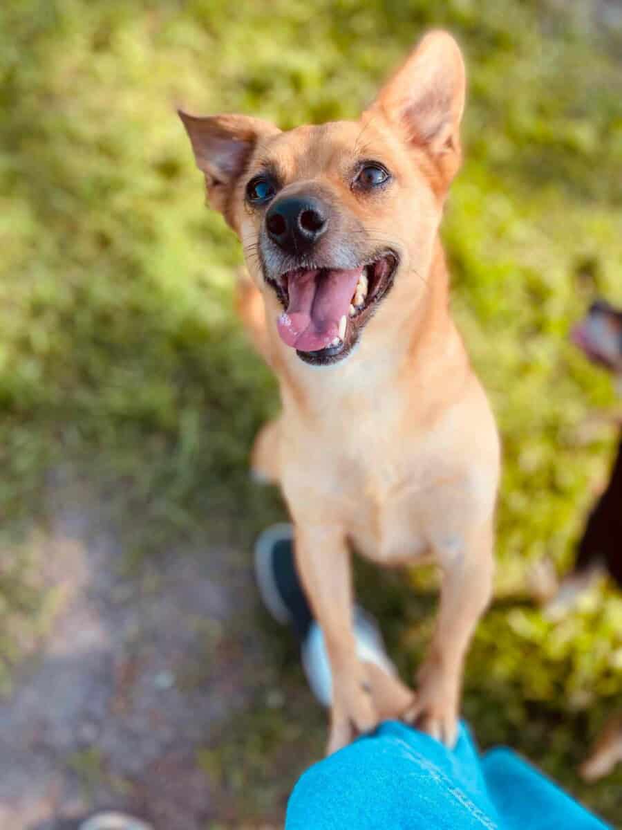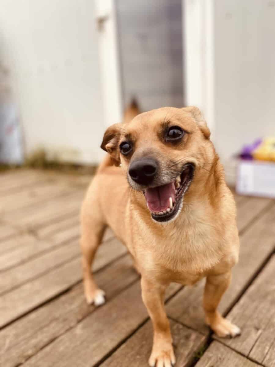 Tänä päivänä mä oon iloinen ja lystikäs koira, juoksentelen tarhan pihalla leveä hymy kasvoillani. Rakastan olla sylissä kannettavana ja jakelen suukkoja kaikille tarhan ihmisille. Tuun tosi hyvin toimeen myös tarhan muiden asukkaiden kanssa, ja jaan häkkini neljän muun koiran kanssa. Meillä ei oo ollu mitään kärhämää, vaan ymmärretään toisiamme. Meitän yhdistää kodittomuus ja ankeat kokemukset katos. On parempi vetää samaa köyttä. Kissoihin en reagoi, vaan osaan olla huomiomatta niitä. Voisin siis sopia myös kissa perheeseen.