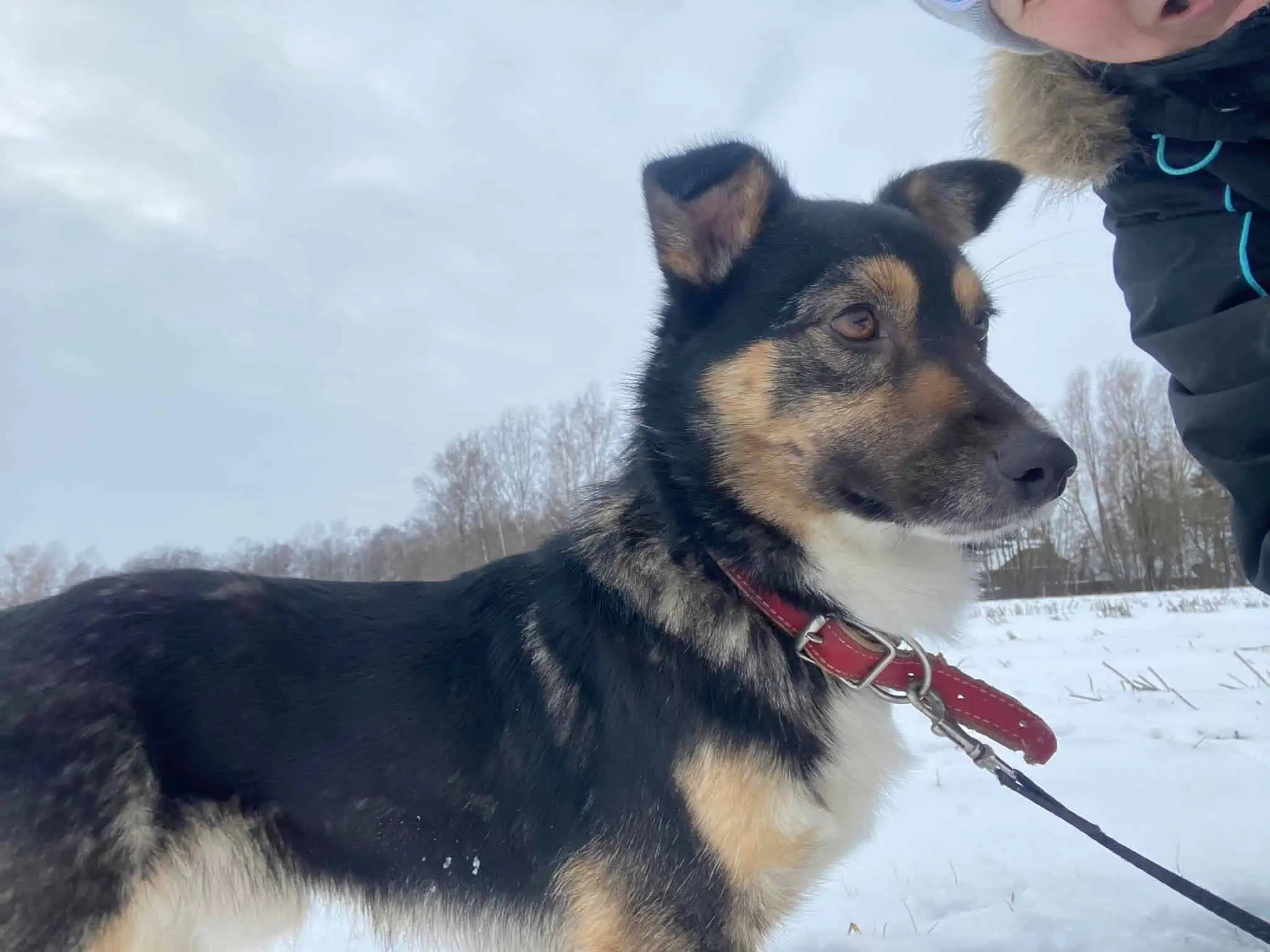 Usein meitä maaseudun teillä juoksentelevia koiria on vaikea saada kiinni. Meillä on sellainen pakenemismoodi päällä ja muutenkin saatetaan pelätä ihmisiä. Anzelikan oli kuitenkin tietenkin ihan pakko pysähtyä tien laitaan ja edes yrittää saada minua kiinni. Näistä ihmisistä tulee ihan sellaisia koirakuiskaajia kun ne viettää päivät pitkät maalaiskoiria pyydystämässä.