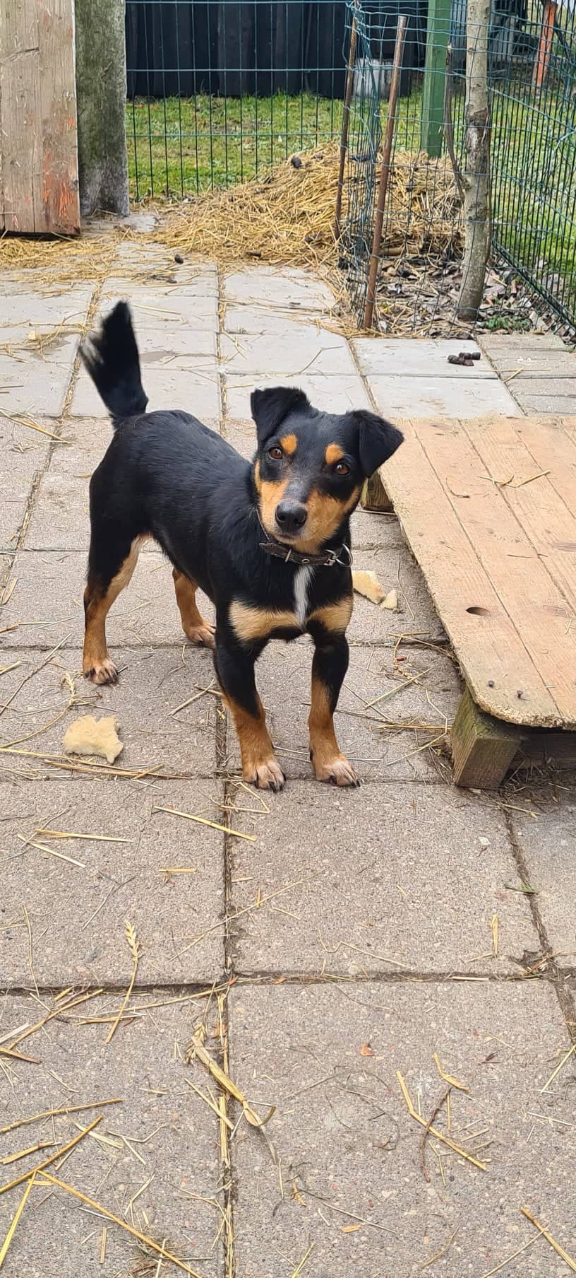 Asustelen tällä hetkellä kerrostalossa toisen PRF:n kautta Suomeen tulleen kotikoiran kanssa. Yritän kovasti katsoa mallia ja rohkaistua. Alkuun piilottelin vain keittön pöydän alla, ja ulos meneminen oli hurjan pelottavaa. Mutta jo muutamassa päivässä rohkeuteni on lisääntynyt huimaa vauhtia. Nyt haluan olla mukana siellä, missä muutkin ovat. Uloskin lähden jo ihan tottuneesti. Olen oppinut kulkemaan jopa hississä, joka oli aivan kamala laite muutama päivä sitten. Ulkona vielä moni asia pelottaa, ja silloin jähmetyn paikalleni. Mutta kun käymme aamu- ja iltalenkit aikaan, jolloin ei ole paljon vastaantulijoita, kaikki sujuu oikein mallikkaasti. Hihnassakin opin kävelemään parissa päivässä.