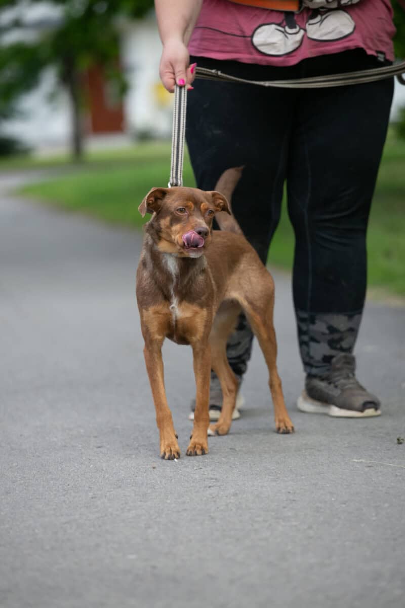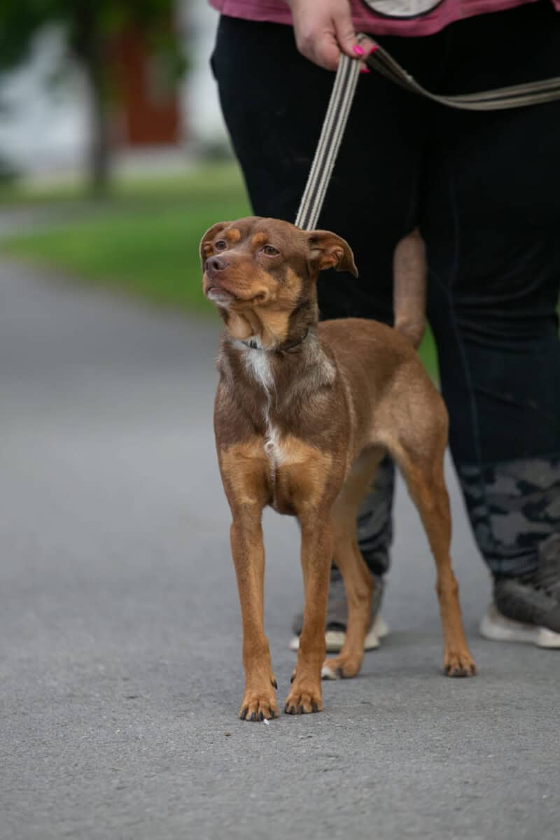Ai millainen koira olen? Olen aika mutkaton muikku: ystävällinen, rohkea ja iloinen. Pidän kaikenikäisistä ja -kokoisista ihmisistä. Tarhalla jokainen hoitaja on suosikkini! Lähden mielelläni kävelylle vapaaehtoisten kanssa, siellä saa usein namuja ja rakkautta rapsujen muodossa osakseen. Onhan meillä nuorilla mimmeillä aina metkumme, mutta kyllä kuvailisin itseäni aika suoraviivaiseksi tapaukseksi. Tie koiranpennun sydämeen käy vatsa(rapsuje)n kautta!