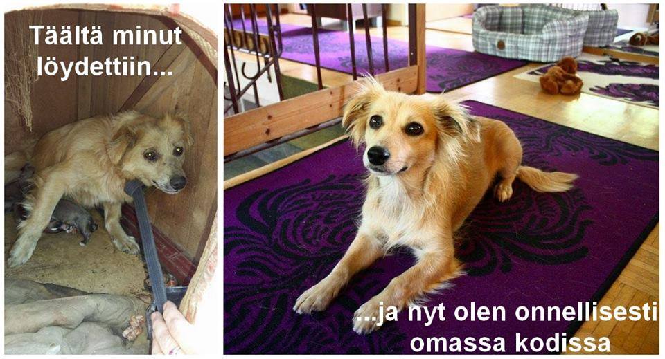 Sinun tehtäväsi on nyt antaa koiralle tilaa, rauhaa, ruokaa, lepoa ja oikeasti aikaa sopeutua kaikkeen uuteen. Viikko, kaksi viikkoa, kolme viikkoa, kuukausi ja usein edes puoli vuotta ei ole tarpeeksi pitkä aika koiran sopeutumiseen. Koira on ollut hylätty ja laiminlyöty koko elämänsä, ne arvet eivät parane hetkessä.
