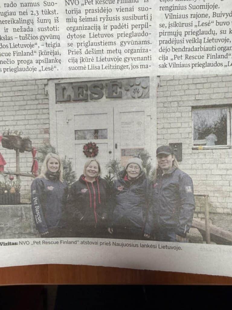 Kun kerroimme tarhavierailun aikana toimittajille, että suomalaisiin koteihin on päätynyt yli 2300 Liettuan koiraa, kaikki hiljenivät. Heidän mukaansa määrä on ”järisyttävä” ja kertoo siitä, miten pieni pohjoinen maa voi muuttaa kokonaisen eläinsuojelukentän suuntaa.