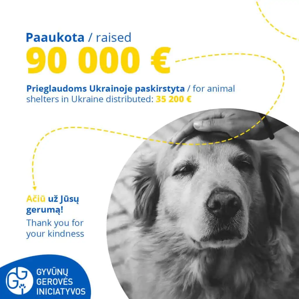 3000 euroa siirrettiin yhteistyöyhdistykselle GGI Gyvunu geroves iniciatyvos, joka on tähän mennessä kerännyt kansainvälisesti 90.000 euroa ja jakanut eri koiratarhoille rahana 32.300 euroa. Ensimmäinen iso rekallinen koiran- ja kissanruokaa pääsi perille suoraan Ukrainaan 7.3.2022, kaksi lähetystä on jo valmiina odottamassa matkaa. Ukrainan sisällä on paljon logistiikkahaasteita avun perille menemiseksi. Nyt analysoidaan miten ensimmäisen lastin toimittaminen perille onnistui, sitten muut rekat lähtevät matkaan.