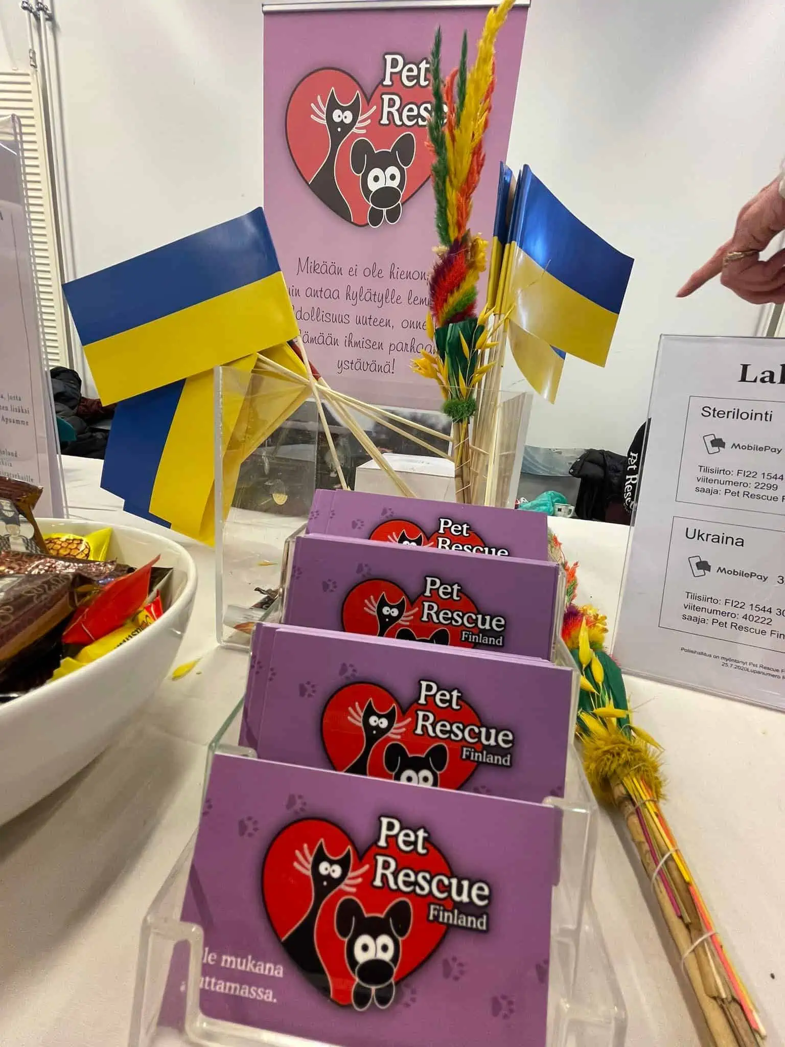 3000 eurolla ostettiin koiran- ja kissanruokaa sekä kuljetuskoppeja, jotka onnistuttiin viemään pikkubussilla 3.3.2022 suoraan Ukrainaan koiratarhalle, jossa on 300 eläintä: https://zoozachyst.wixsite.com/zooprotection