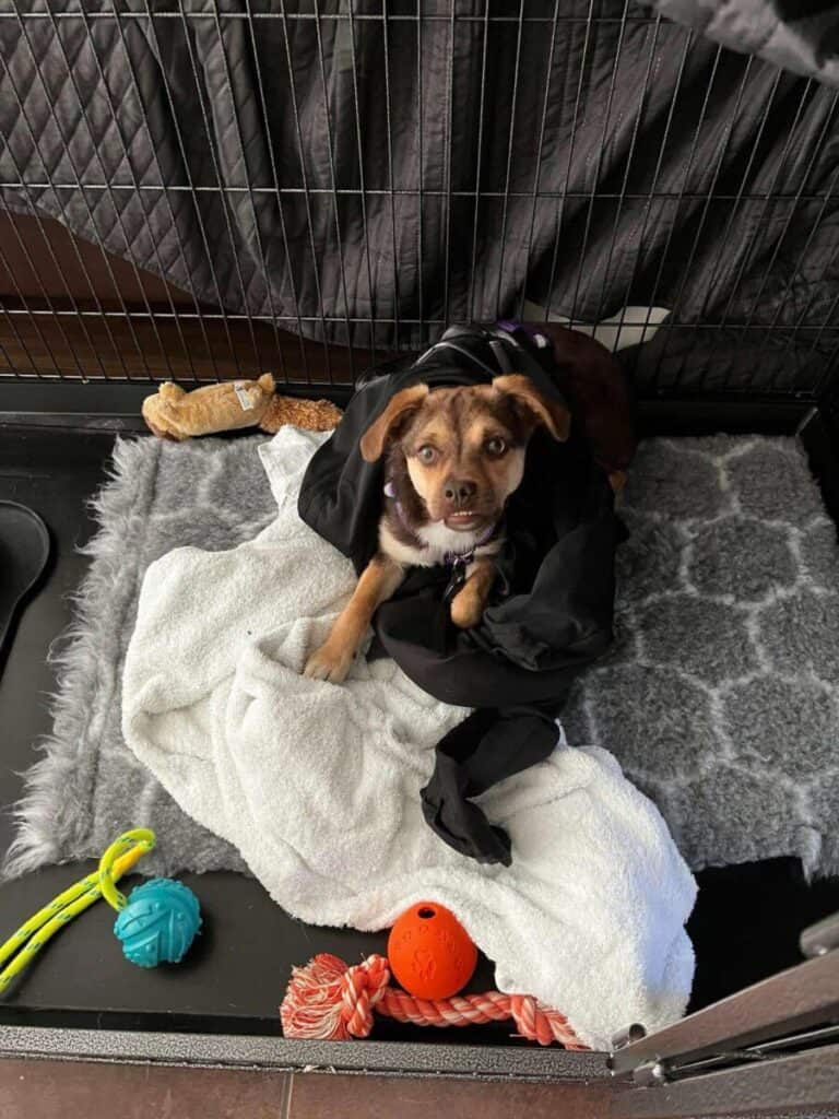 Kotona olimme laittaneet Vendille valmiiksi häkin, jossa oli tarjolla petipaikka sekä ruoka- ja juomakipot. Ovi häkkiin oli auki, jonka lisäksi olimme laittaneet häkin päälle huovan, jolloin siitä tuli ikään kuin pesäpaikka uudelle tulokkaalle. Vendi katseli pelokkain silmin häkistä meitä, eikä halunnut juurikaan lähteä katselemaan uutta kotia. Ruoka kuitenkin maistui jo heti ensi hetkestä lähtien. Yöllä ihmisten mentyä nukkumaan, Vendi lähti pienille tutkimusmatkoille uuteen kotiin. Kodin erilaiset äänet eivät näyttäneet pelottavan Vendiä, eikä hän ole näyttänyt olevan ääniherkkä koira.