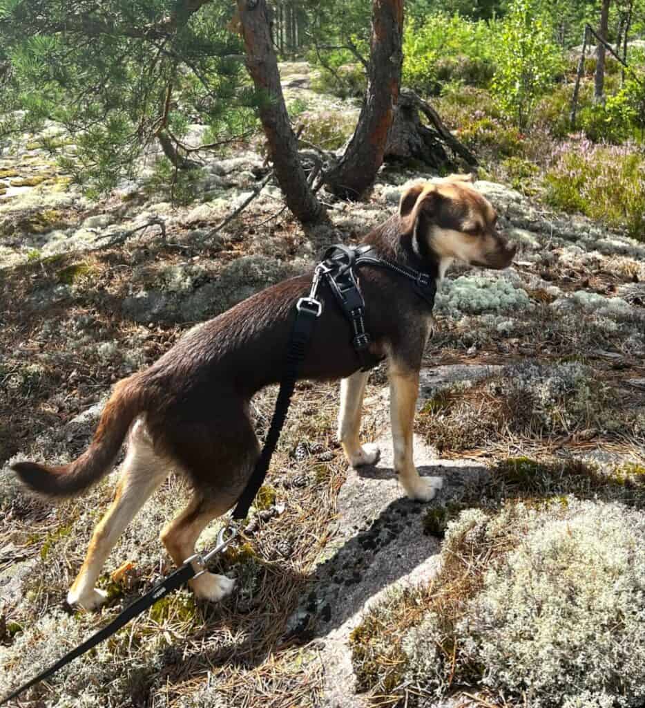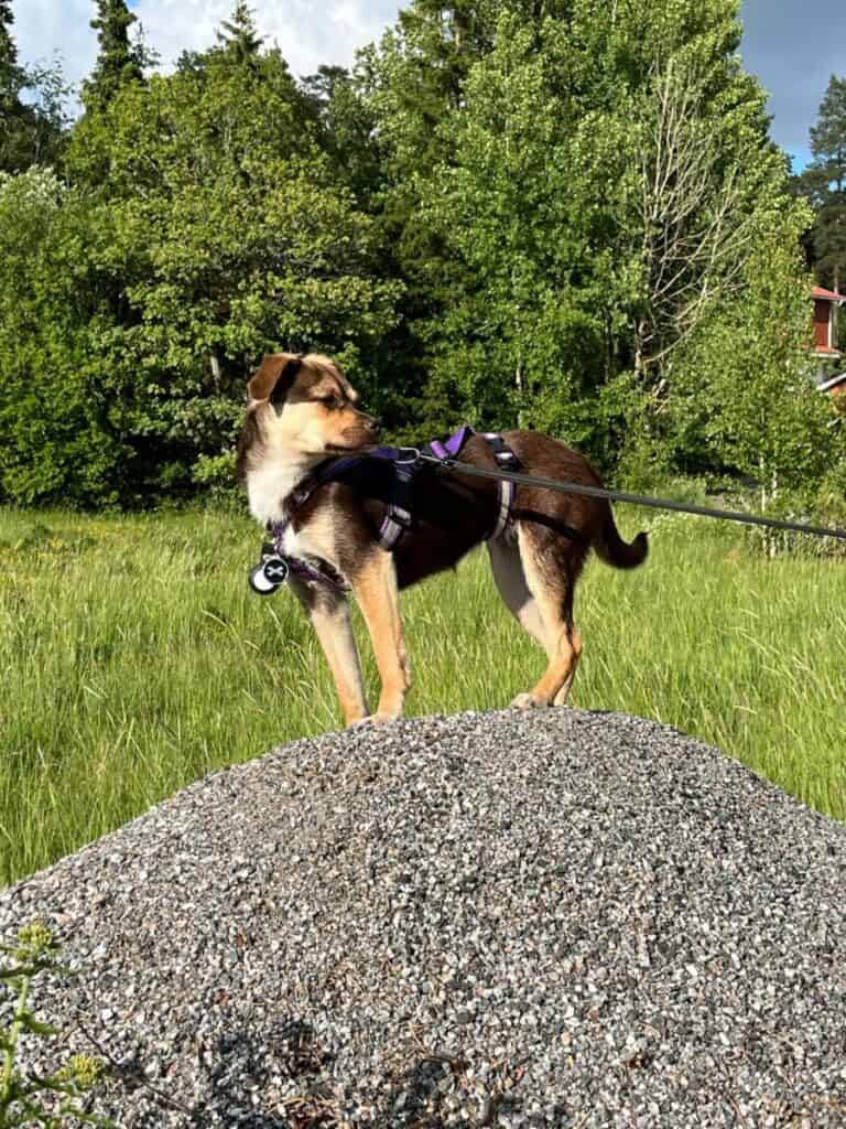 Pääsimme jo heti ensimmäisenä päivänä myös ulkoilemaan ja silloin myös Vendi pääsi hieman rentoutumaan. Vendiä jännitti hieman tarpeiden tekeminen lenkillä, mutta pian huomasimme, että lähellä oleva pelto oli paikka, jonne Vendi meni mielellään asioilleen. Teimme pikku lenkkejä ja tarpeet aina lähipellolle. Vendi näytti alusta saakka pitävänsä ulkoilusta kovasti, käveli reipasta vauhtia ja nuuski innoissaan uudessa ympäristössä. Palkitsimme Vendiä heti alusta lähtien tarpeiden tekemisestä ulos pienellä herkulla ja nopeasti Vendi fiksuna koirana oppi, mistä herkun saa. Pissa tuli alussa ihan muutamia kertoja sisälle, mutta todella nopeasti Vendi oppi sisäsiistiksi. Alkuviikkoina Vendi rohkaistui päivä päivältä enemmän ja enemmän tutkimaan uutta kotia, antoi koskettaa ja silittää sekä antoi tehdä erilaisia hoitotoimenpiteitä, kuten leikata kynsiä. Mieheni oli kaikkein pelottavin Vendin mielestä ja Vendi ei antanut hänen koskettaa itseään pitkään aikaan. Lenkit kuitenkin onnistuivat myös hänen kanssaan, mutta kun lenkiltä tultiin kotiin, Vendi väisteli häntä. Minuun ja poikiimme Vendi suhtautui jo alussa avoimemmin.