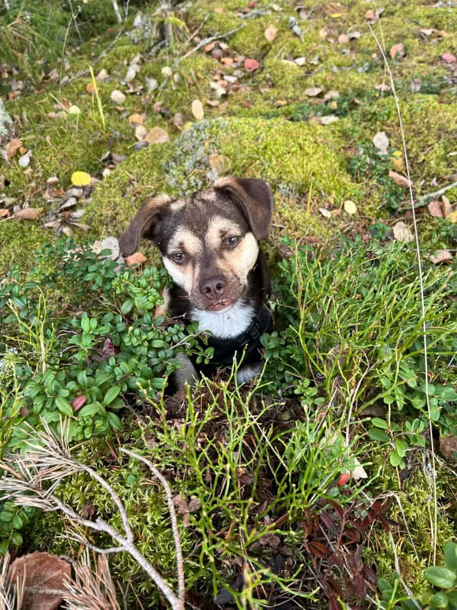 Pääsimme jo heti ensimmäisenä päivänä myös ulkoilemaan ja silloin myös Vendi pääsi hieman rentoutumaan. Vendiä jännitti hieman tarpeiden tekeminen lenkillä, mutta pian huomasimme, että lähellä oleva pelto oli paikka, jonne Vendi meni mielellään asioilleen. Teimme pikku lenkkejä ja tarpeet aina lähipellolle. Vendi näytti alusta saakka pitävänsä ulkoilusta kovasti, käveli reipasta vauhtia ja nuuski innoissaan uudessa ympäristössä. Palkitsimme Vendiä heti alusta lähtien tarpeiden tekemisestä ulos pienellä herkulla ja nopeasti Vendi fiksuna koirana oppi, mistä herkun saa. Pissa tuli alussa ihan muutamia kertoja sisälle, mutta todella nopeasti Vendi oppi sisäsiistiksi. Alkuviikkoina Vendi rohkaistui päivä päivältä enemmän ja enemmän tutkimaan uutta kotia, antoi koskettaa ja silittää sekä antoi tehdä erilaisia hoitotoimenpiteitä, kuten leikata kynsiä. Mieheni oli kaikkein pelottavin Vendin mielestä ja Vendi ei antanut hänen koskettaa itseään pitkään aikaan. Lenkit kuitenkin onnistuivat myös hänen kanssaan, mutta kun lenkiltä tultiin kotiin, Vendi väisteli häntä. Minuun ja poikiimme Vendi suhtautui jo alussa avoimemmin.